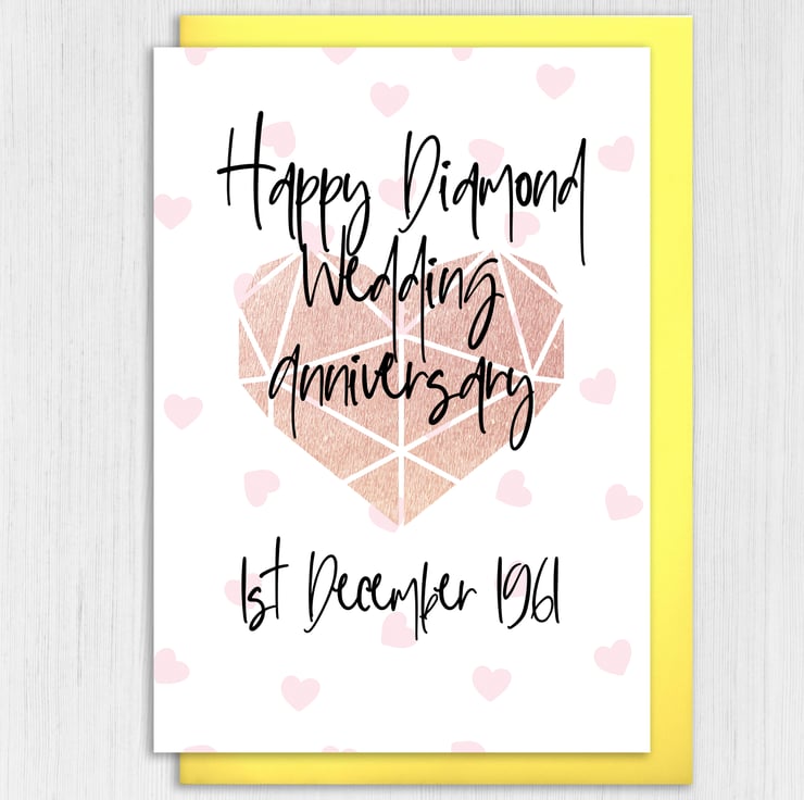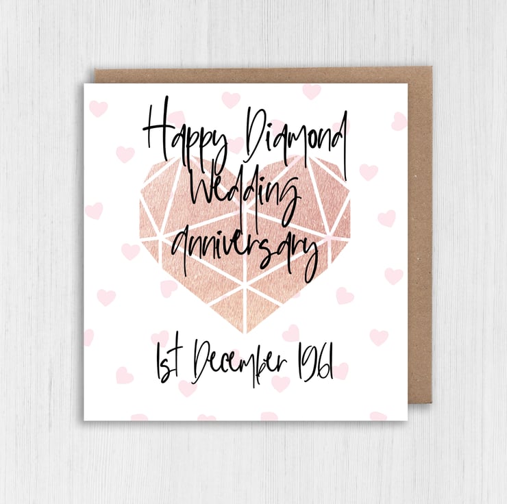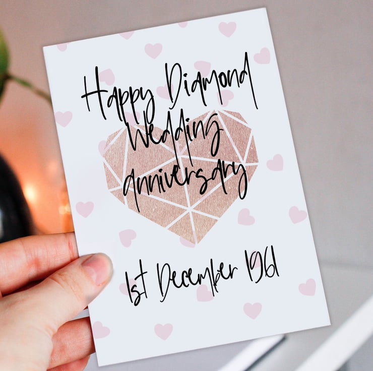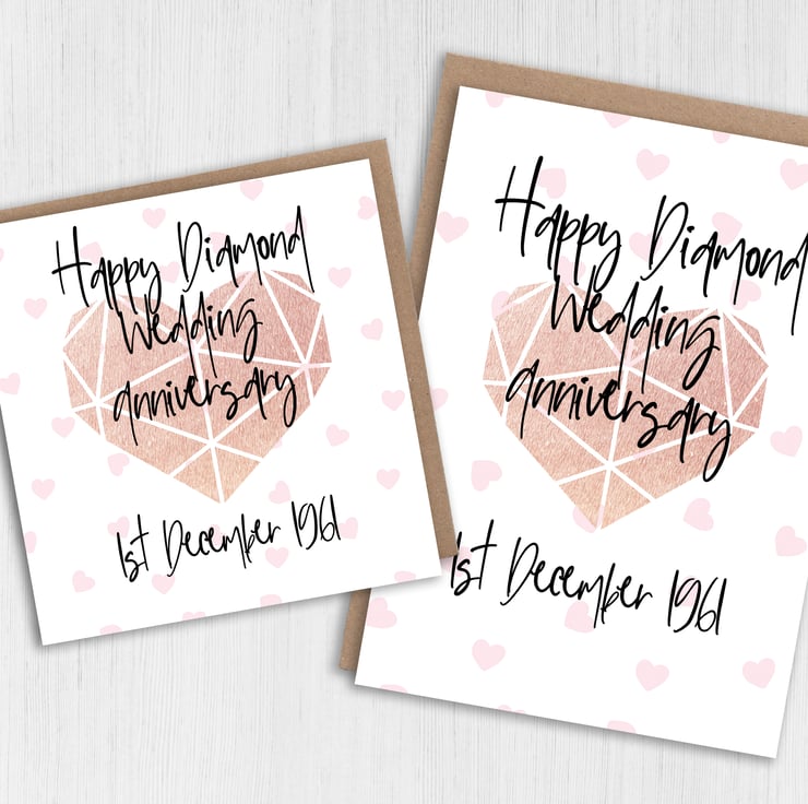 Personalised Diamond (60th/60 years) anniversary card: Personalised with date (Size A6/A5/A4/Square 6x6")