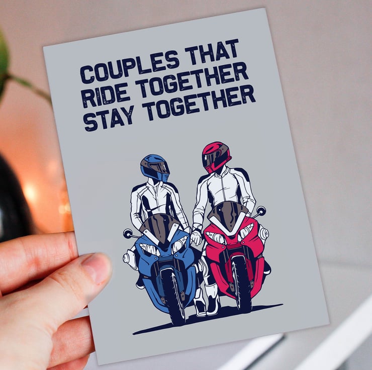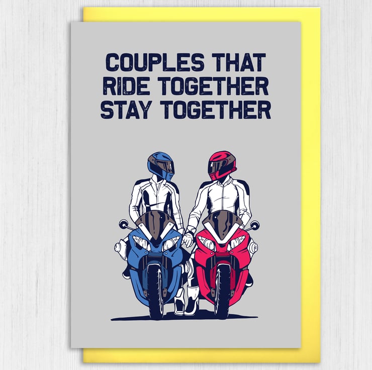 Bikers anniversary card: Couples that ride together for biker couple, motorbikes, bikers (Size A6/A5/A4/Square 6x6")