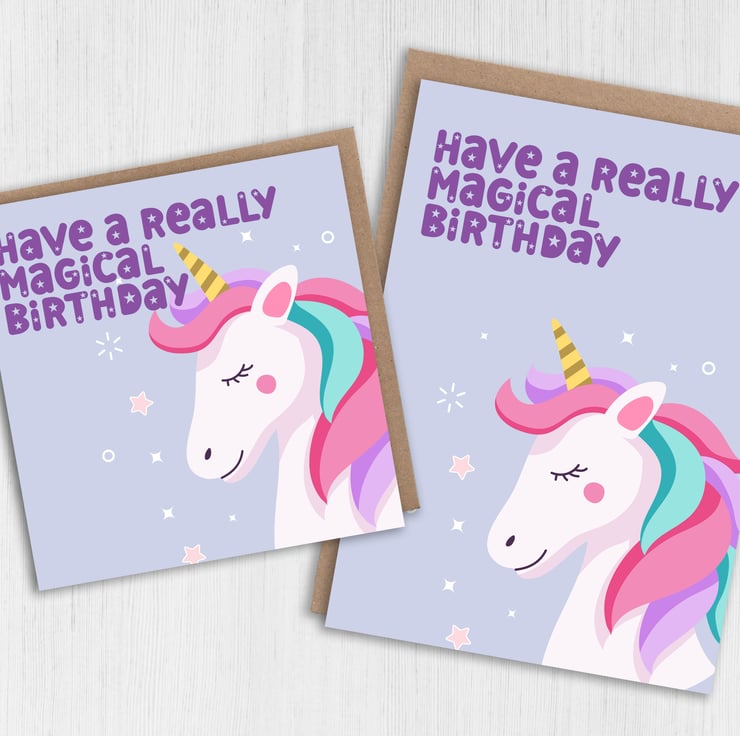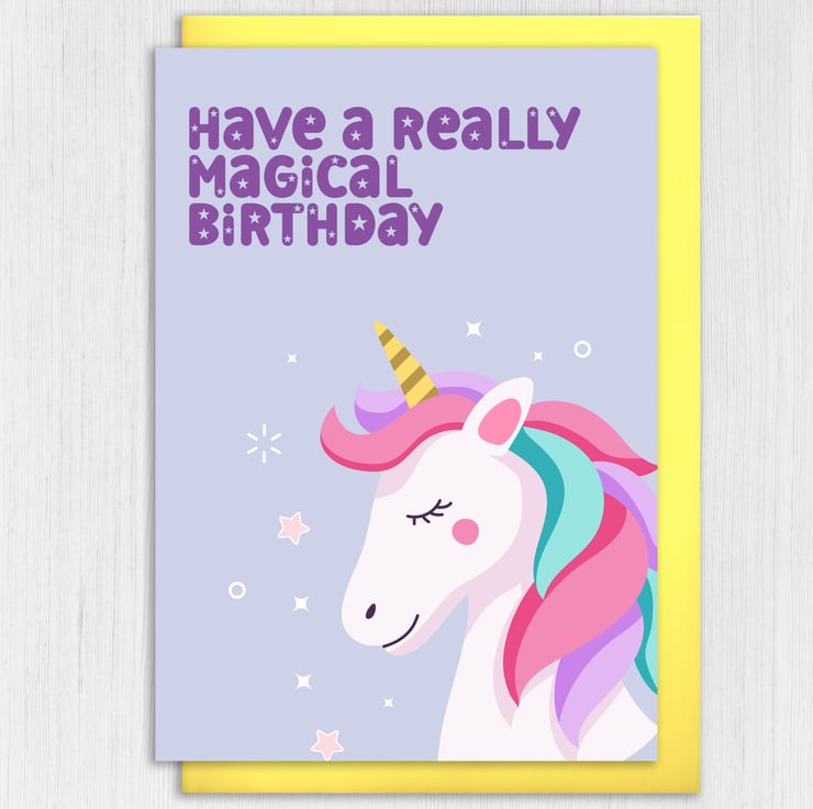 Unicorn children, child, kid, boy, girl birthday card: Have a really magical birthday (Size A6/A5/A4/Square 6x6")
