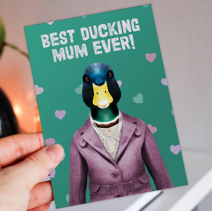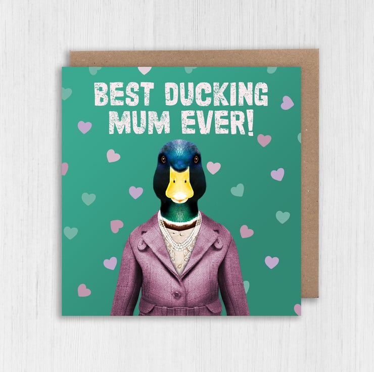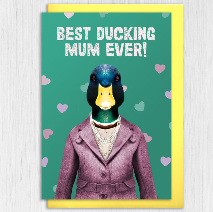 Duck in clothes mum, mom, mother Mother's Day card: Best ducking mum, mom ever! (Animalyser)