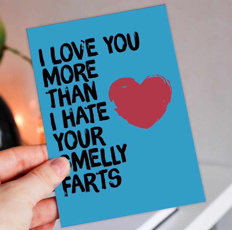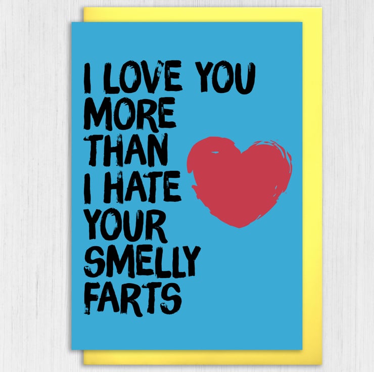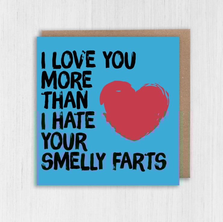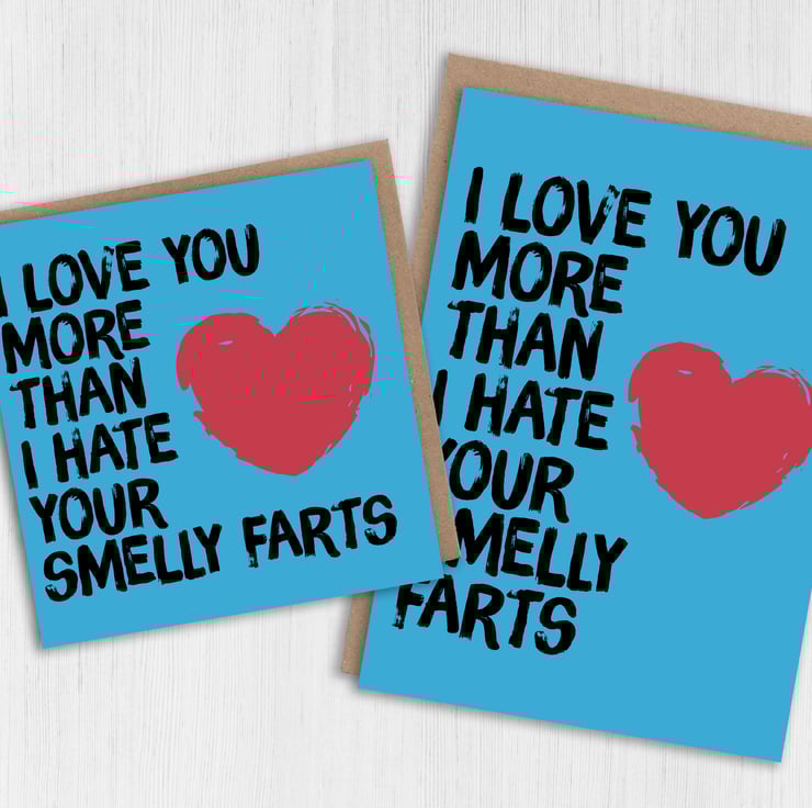 Funny, cheeky fart anniversary card for wife, husband, girlfriend, boyfriend: Hate your smelly farts (Size A6/A5/A4/Square 6x6")