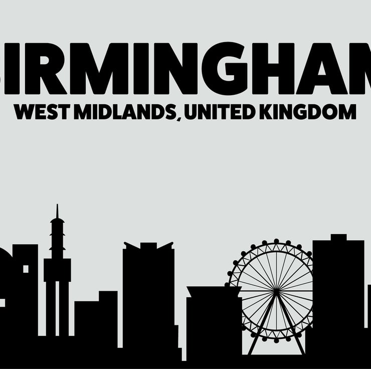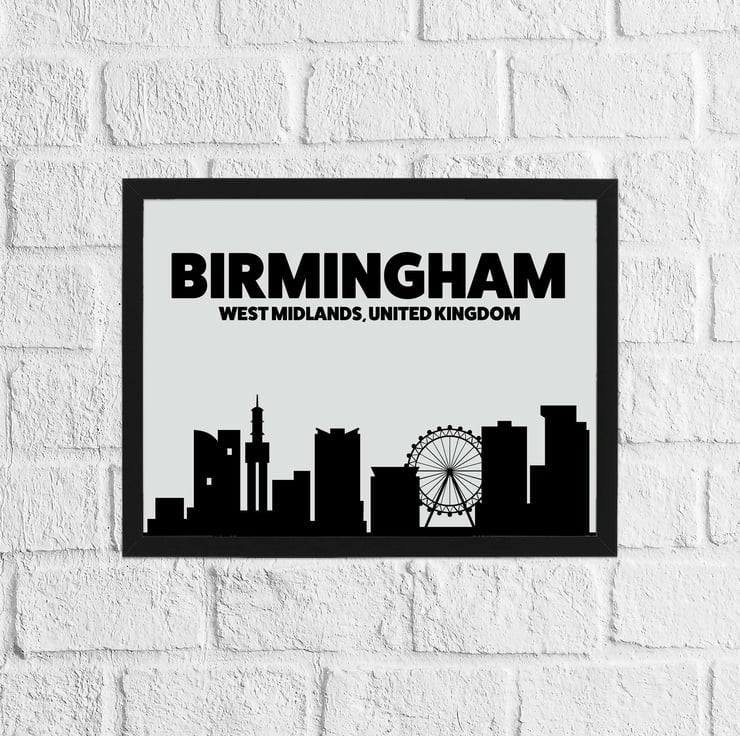 Skyline silhouette of Birmingham, West Midlands, UK, print