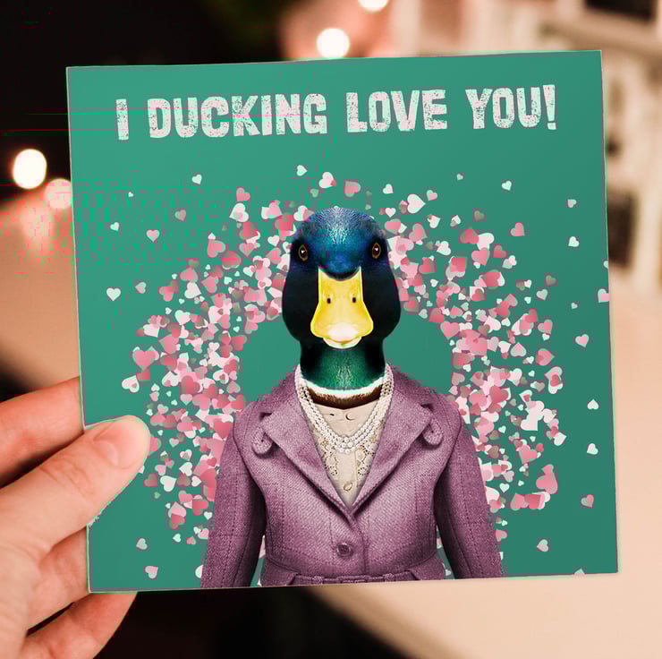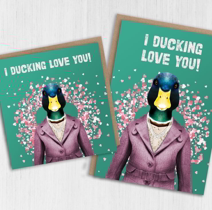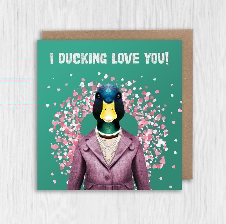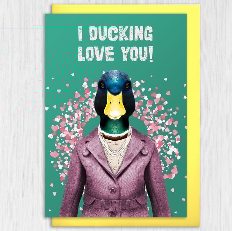Duck in clothes anniversary, love card - I ducking love you (Animalyser)