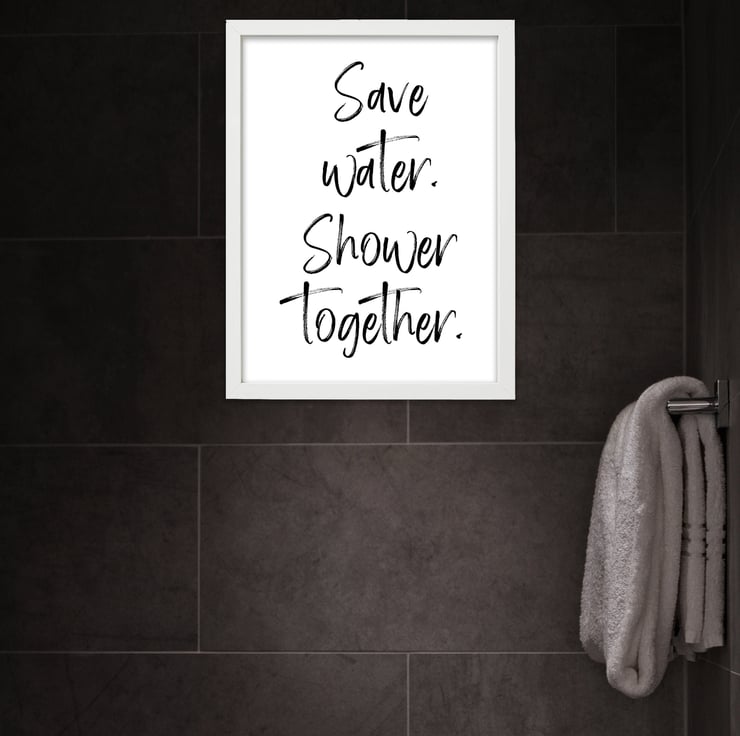 Save water. Shower together. Bathroom typography print