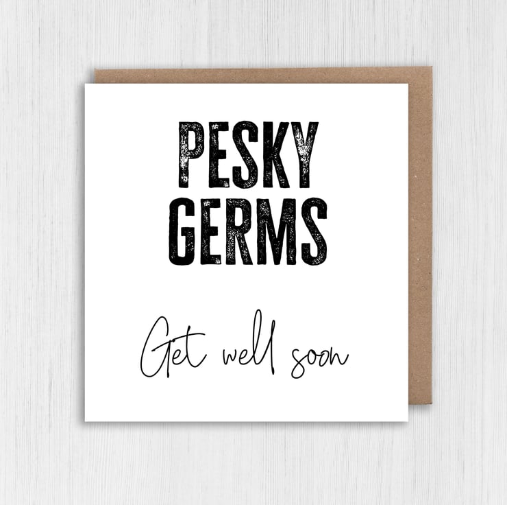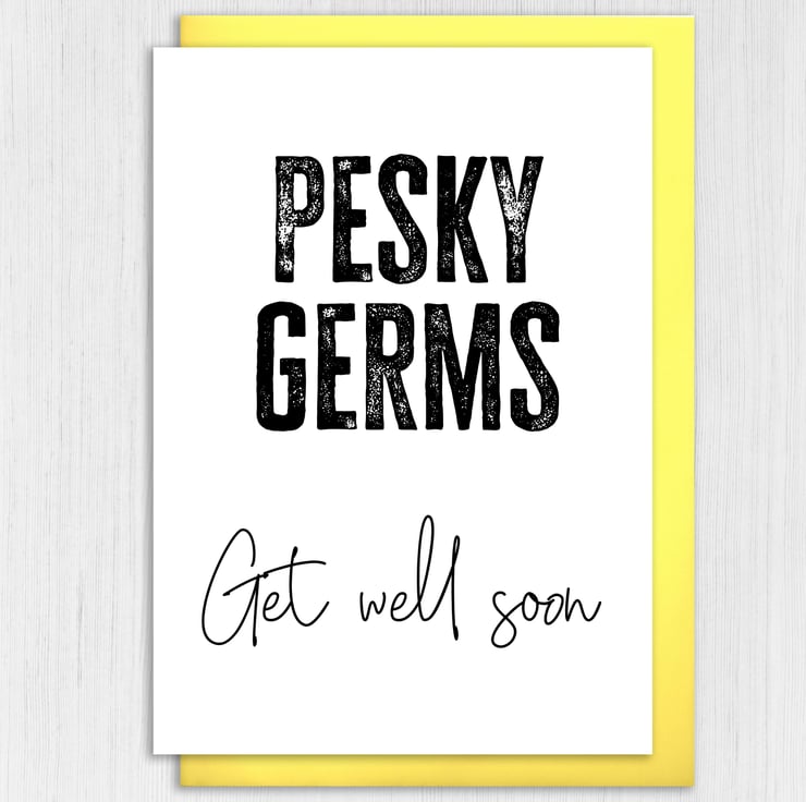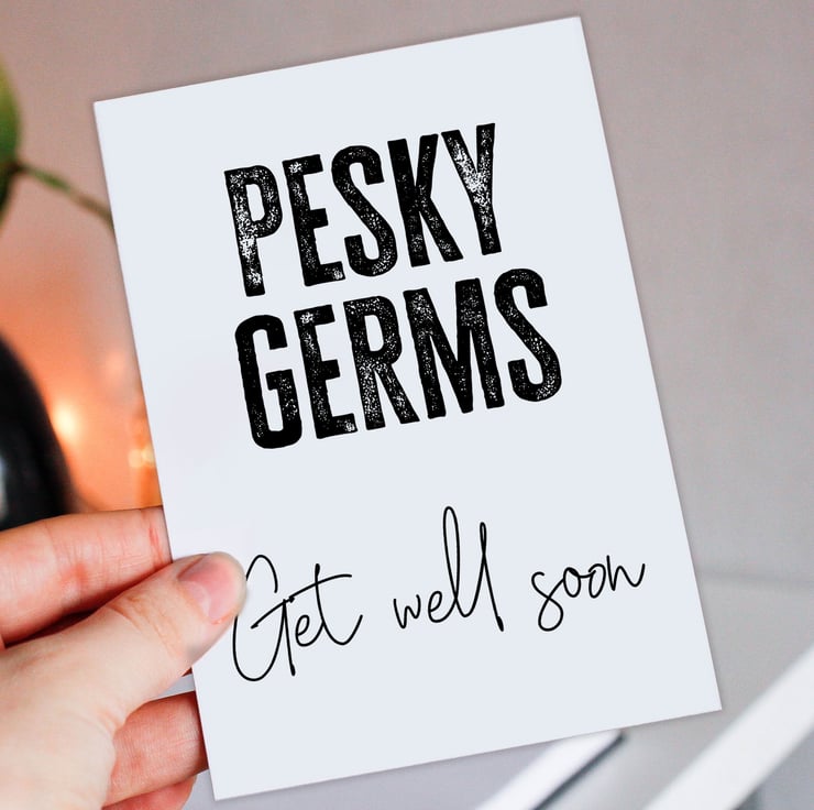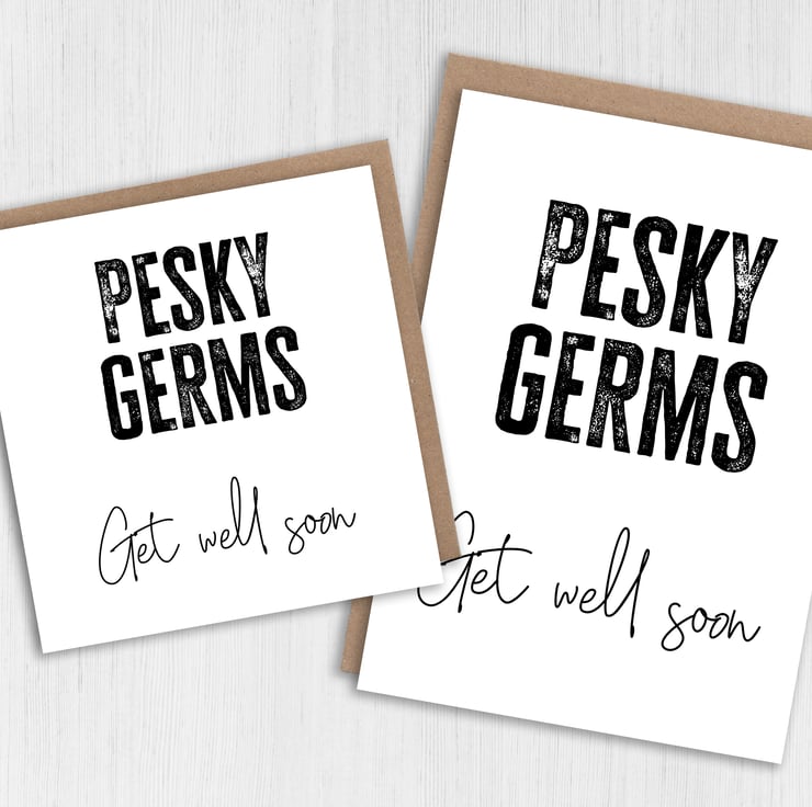 Funny get well soon, coronavirus, Covid, illness, unwell, poorly, under the weather card - Pesky germs (Size: A6/A5/A4/Square 6x6")