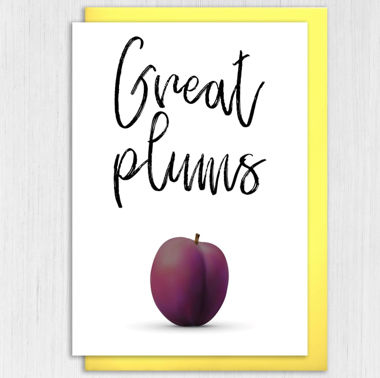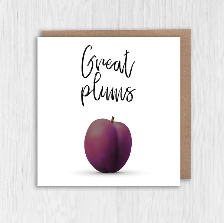 Funny, cheeky, rude fruit anniversary card: Great plums (Size A6/A5/A4/Square 6x6")