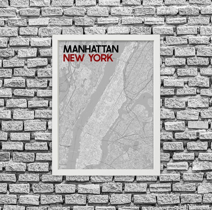 Manhattan, New York: Black and red street map print