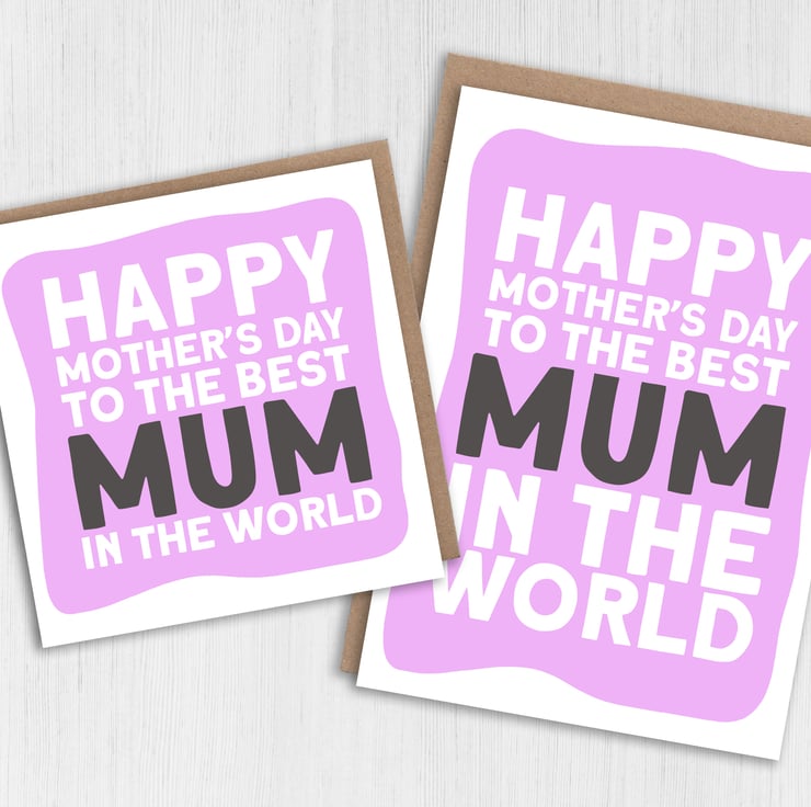 Happy Mother's Day card for mum, mom, mam, mother: Best mum,mom in the world (Size A6/A5/A4/Square 6x6")