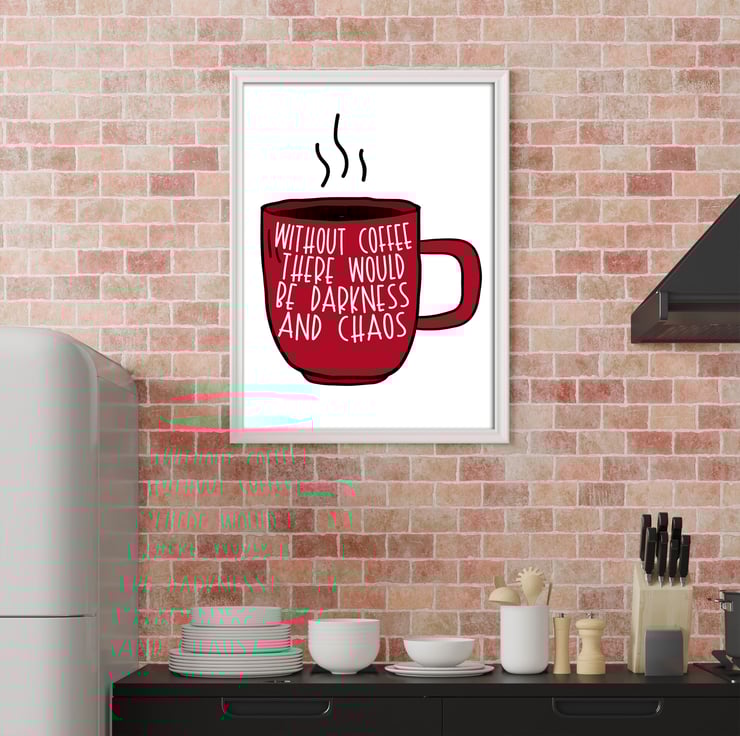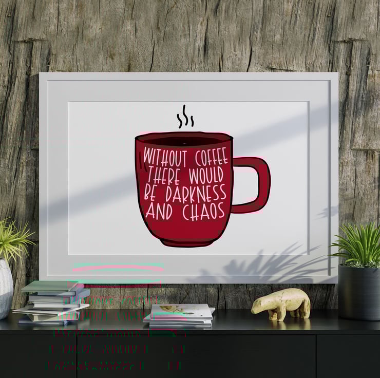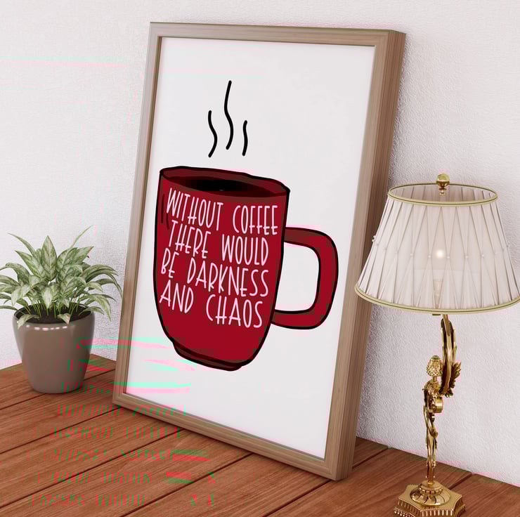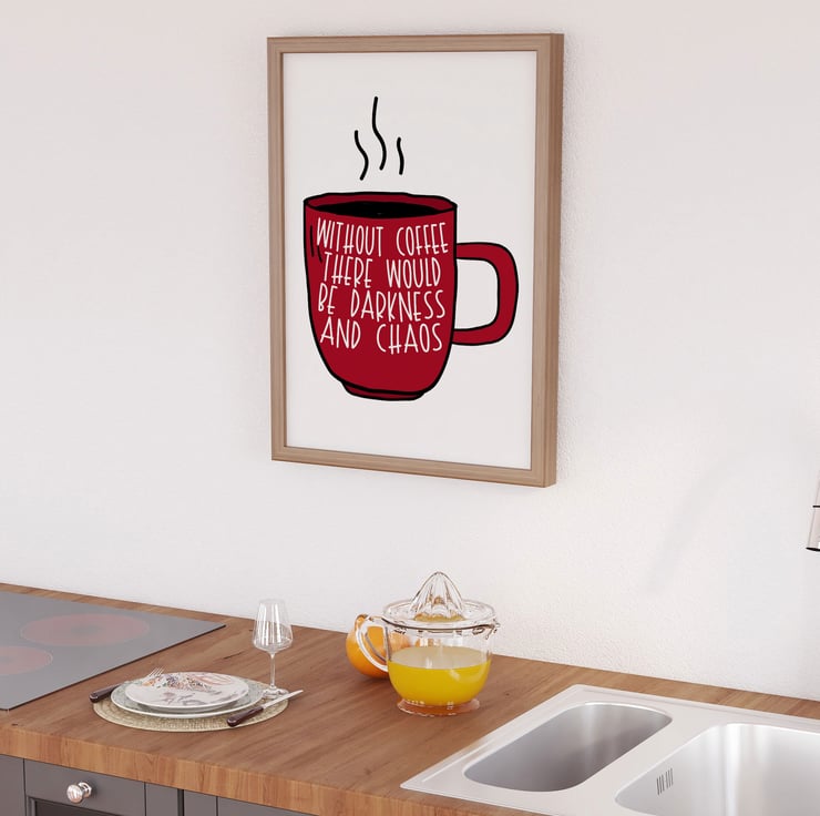 Without coffee there would be darkness and chaos typography kitchen print