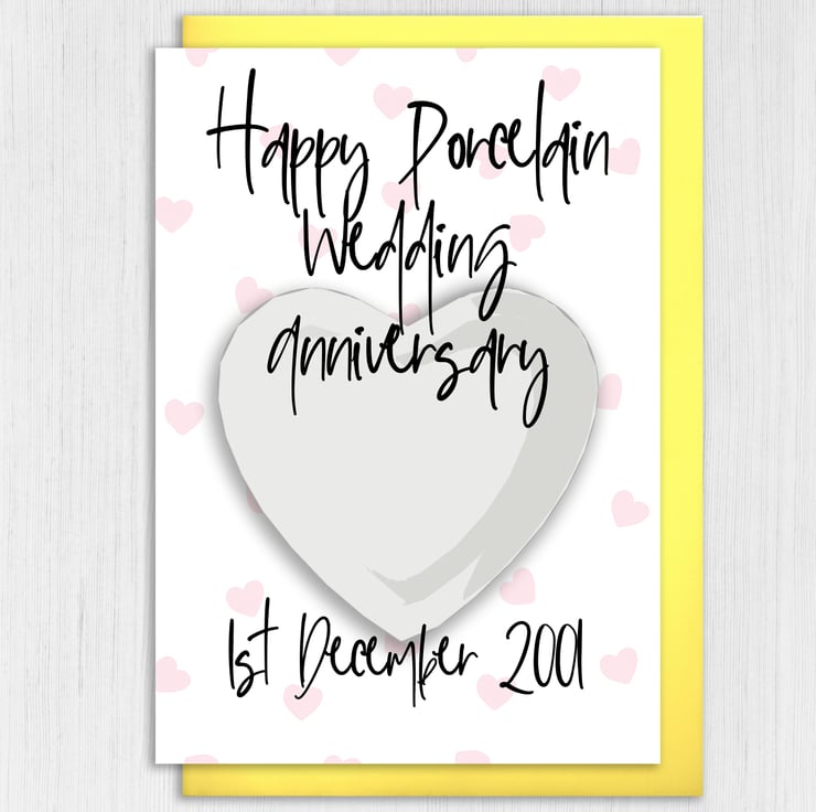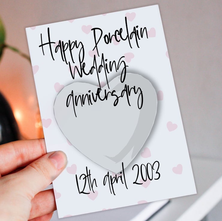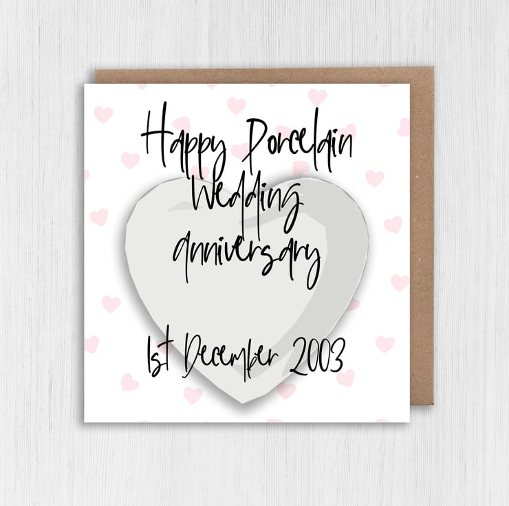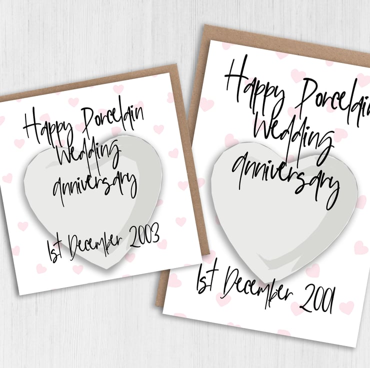 Personalised Porcelain (18th/18 years or 20th/20 years) anniversary card: Personalised with date (Size A6/A5/A4/Square 6x6")
