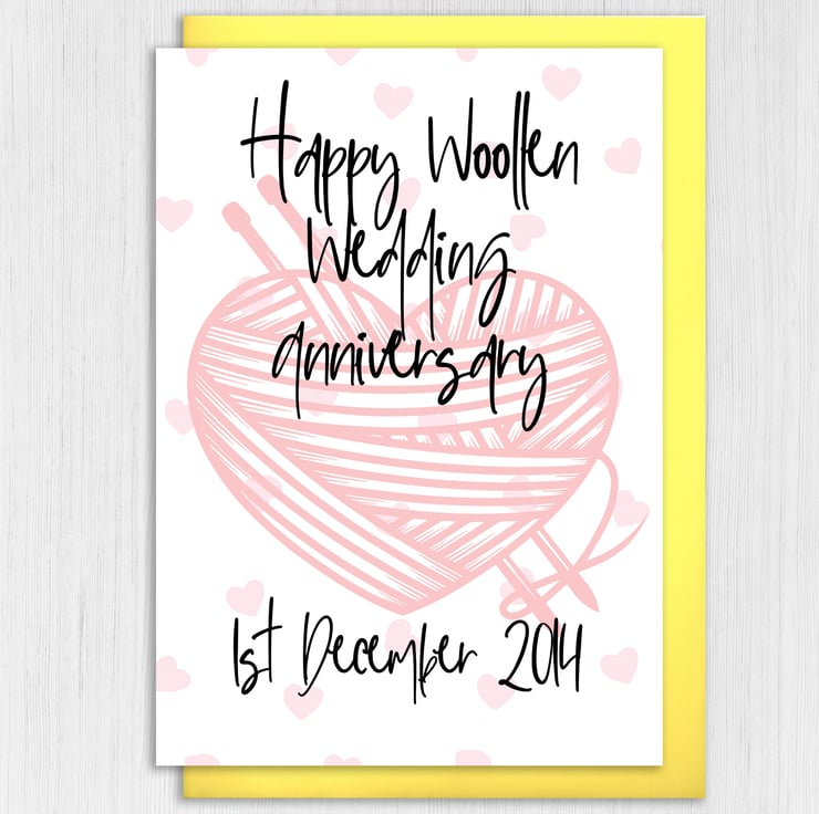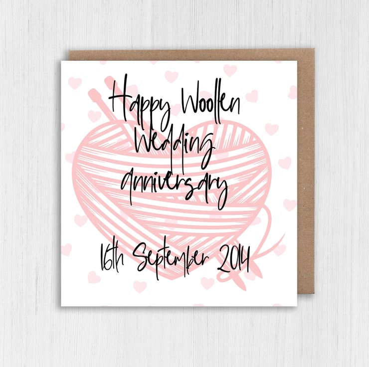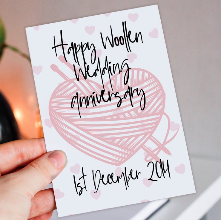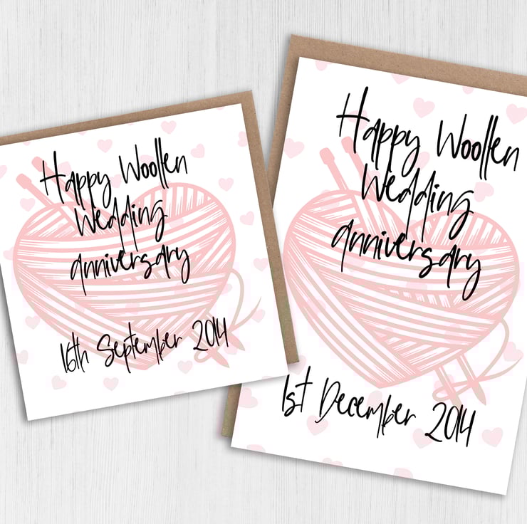 Personalised Woollen (7th/seven year) anniversary card: Personalised with date (Size A6/A5/A4/Square 6x6")