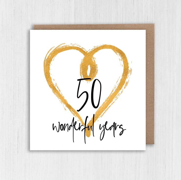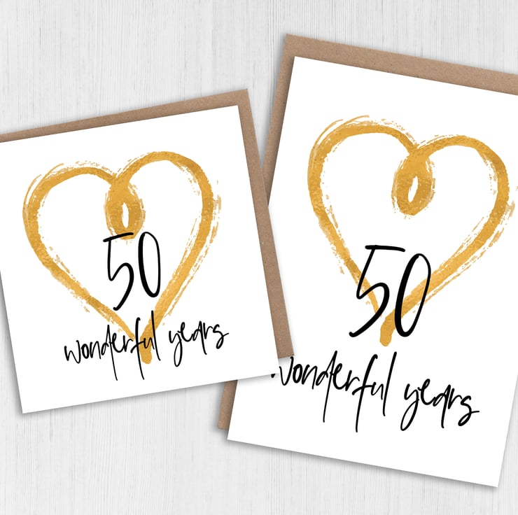 Golden (50th/50 years) anniversary card: 50 wonderful years (Size A6/A5/A4/Square 6x6")