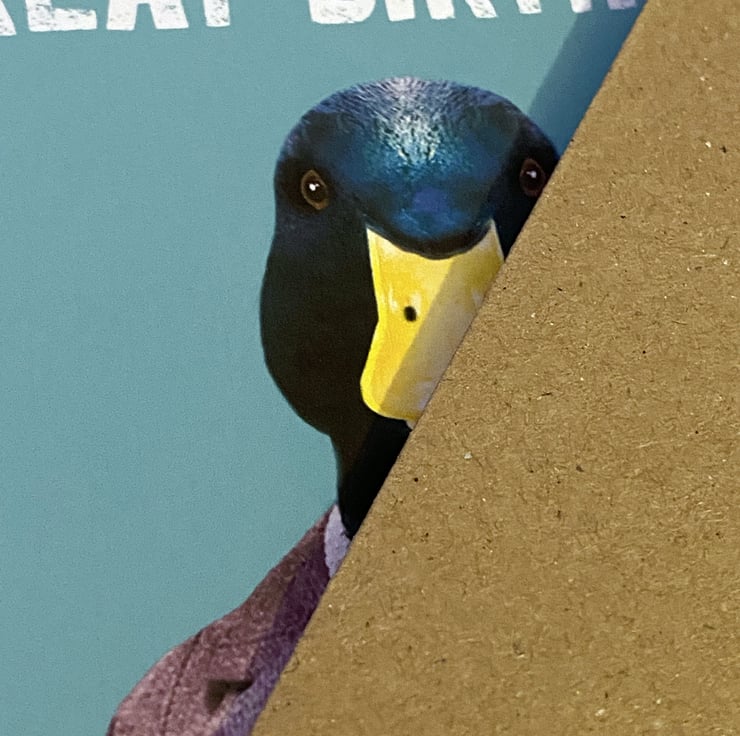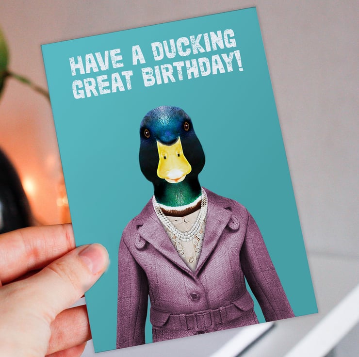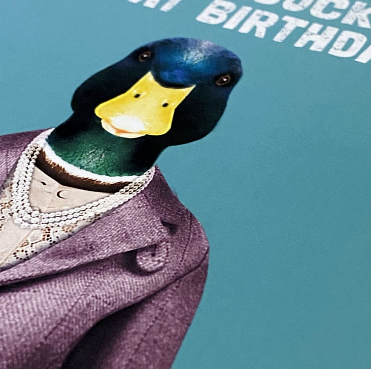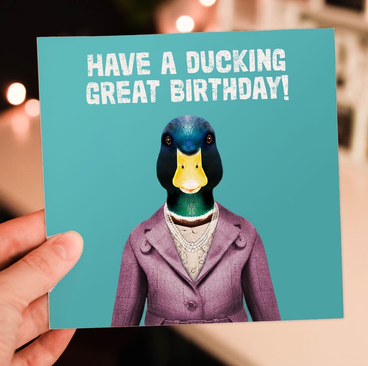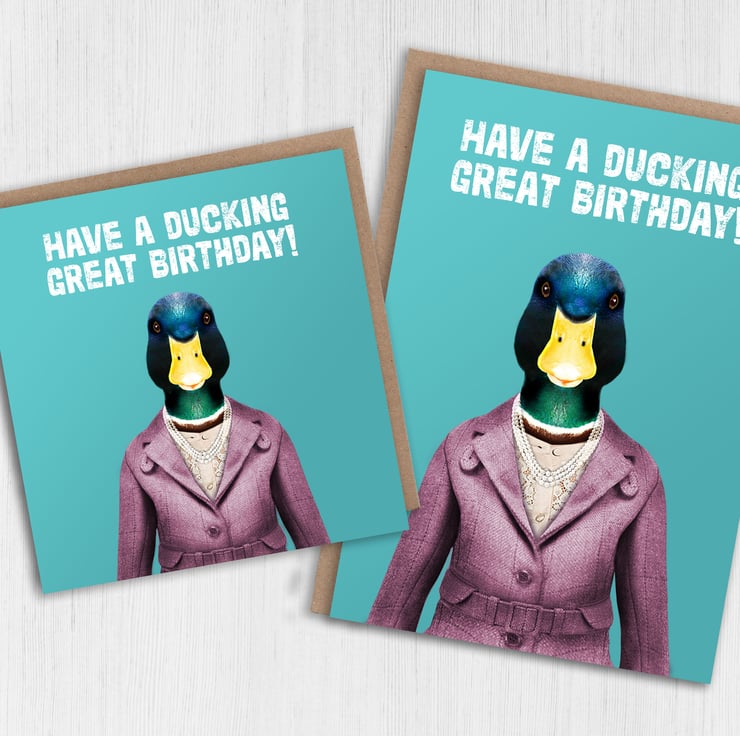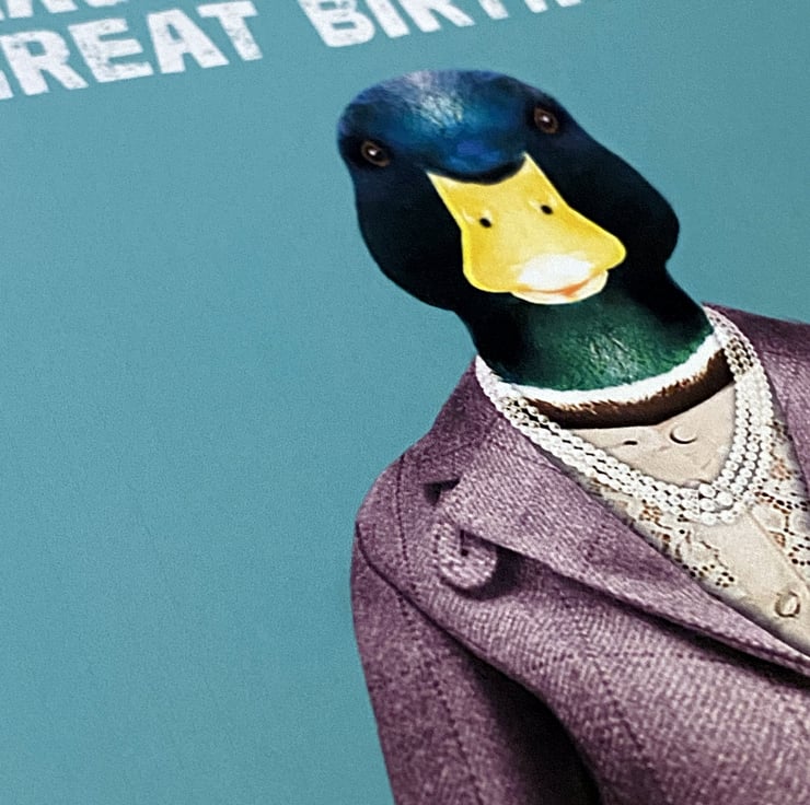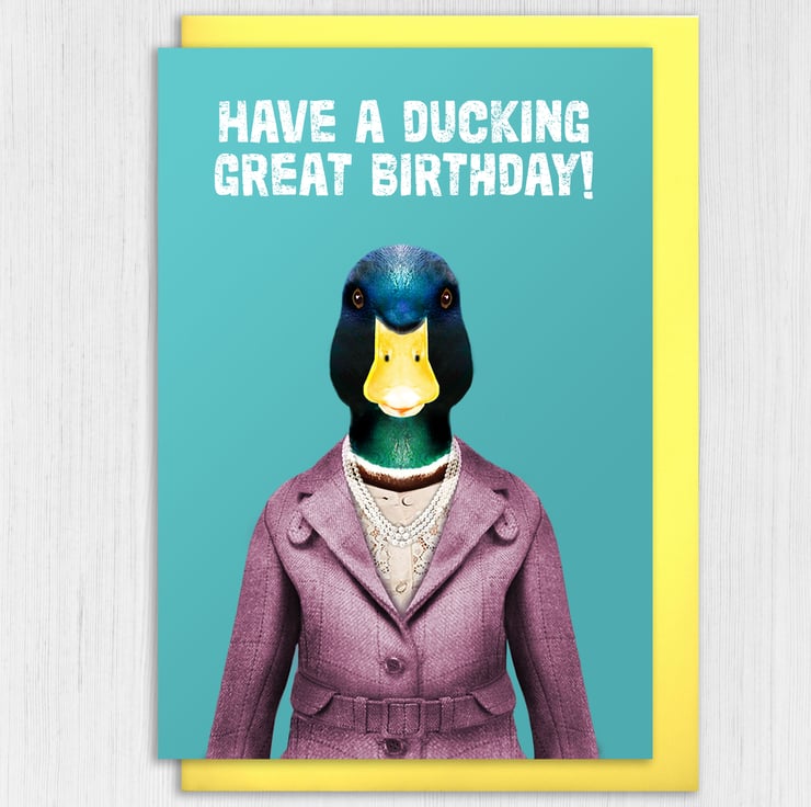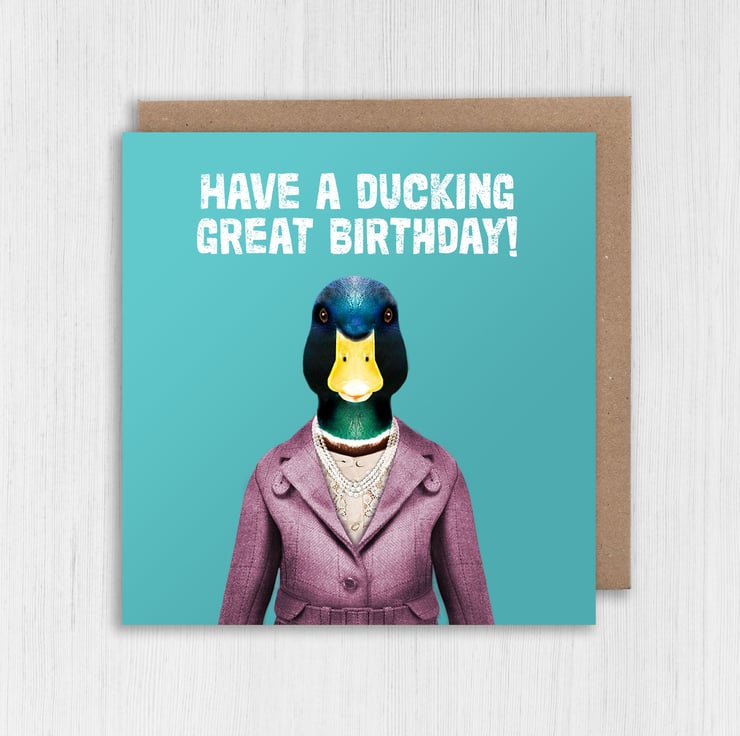 Duck in clothes birthday, duck pun card: Have a ducking great birthday (Animalyser)