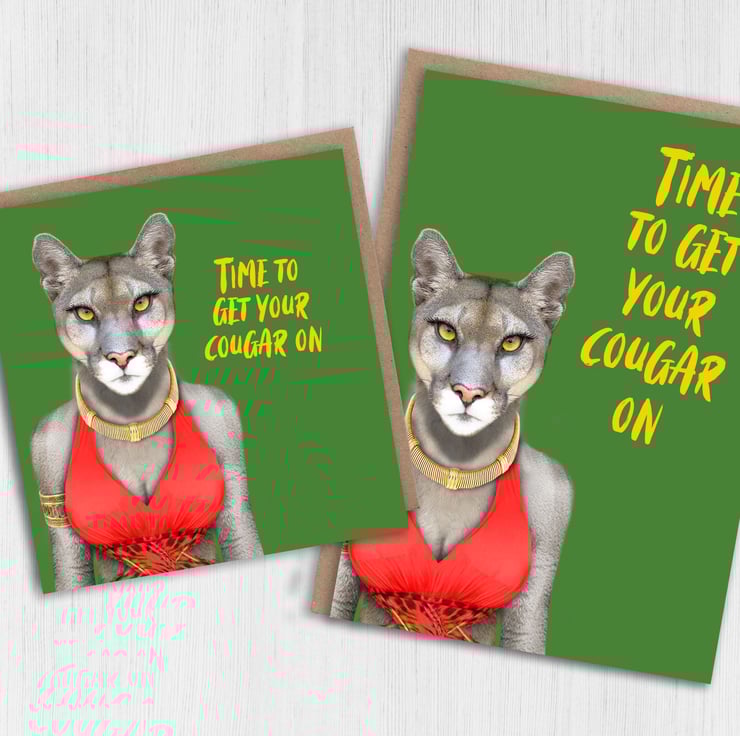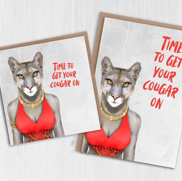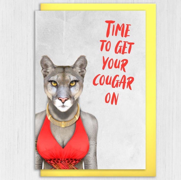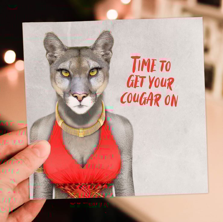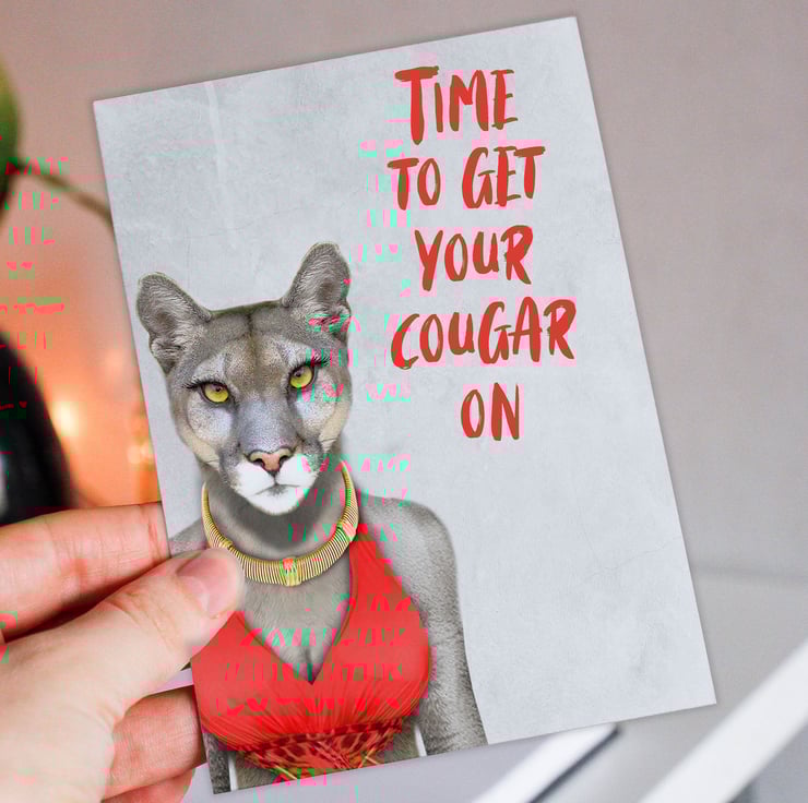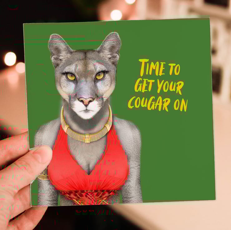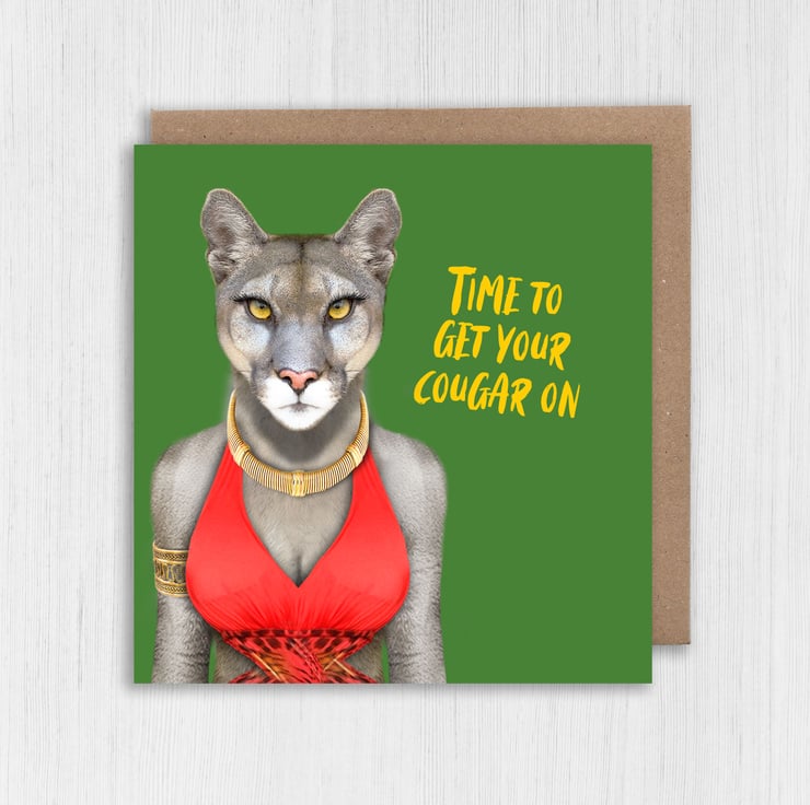 Cougar in clothes old lady, old woman birthday card: Time to get your cougar on (Animalyser)