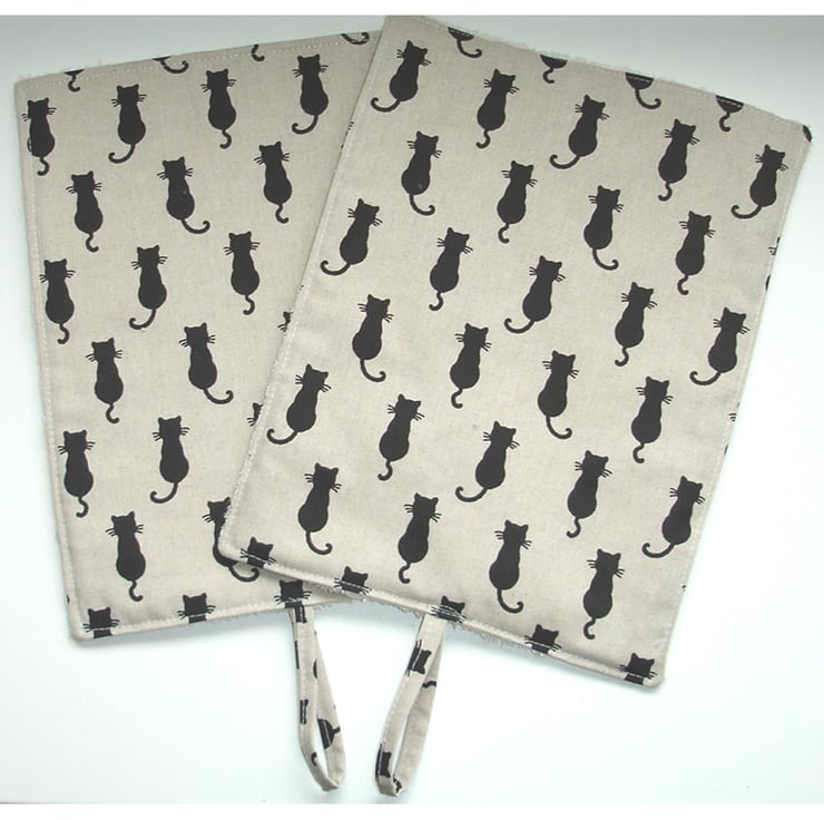 Pair Rayburn 600 Cat Hob Lid Mat Covers 2 x Black Cats Cover