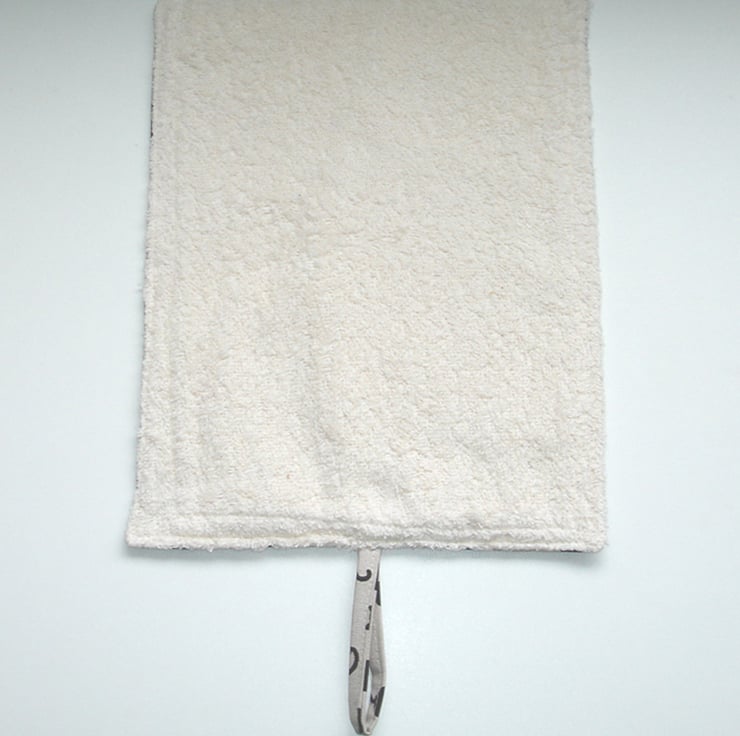 This mat has three layers - Facing cotton fabric, a layer of padding and a layer of towelling - Making it also suitable for mopping up and pot-grabbing!