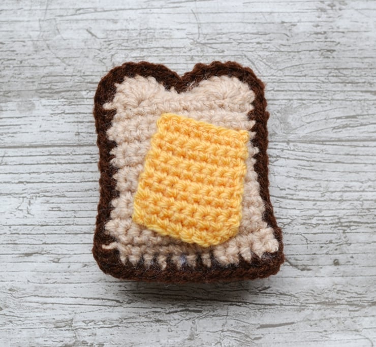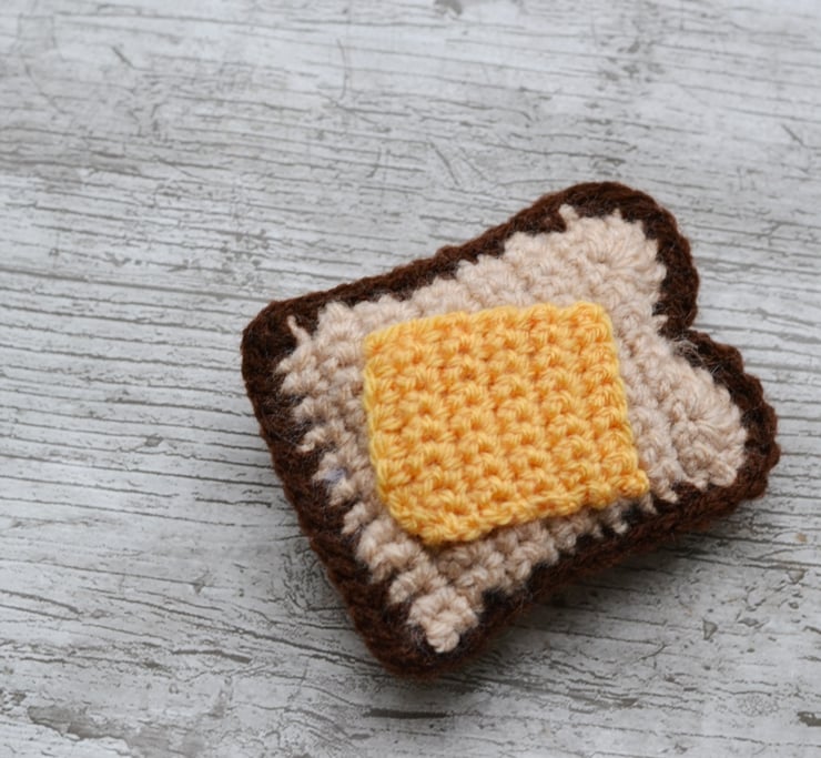 Hand crochet cheese on toast cats kicker toy with 2 options for you to choose how it is finished.