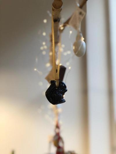 Hand made and glazed item, ribbon colours do vary, (please state preferences when ordering )