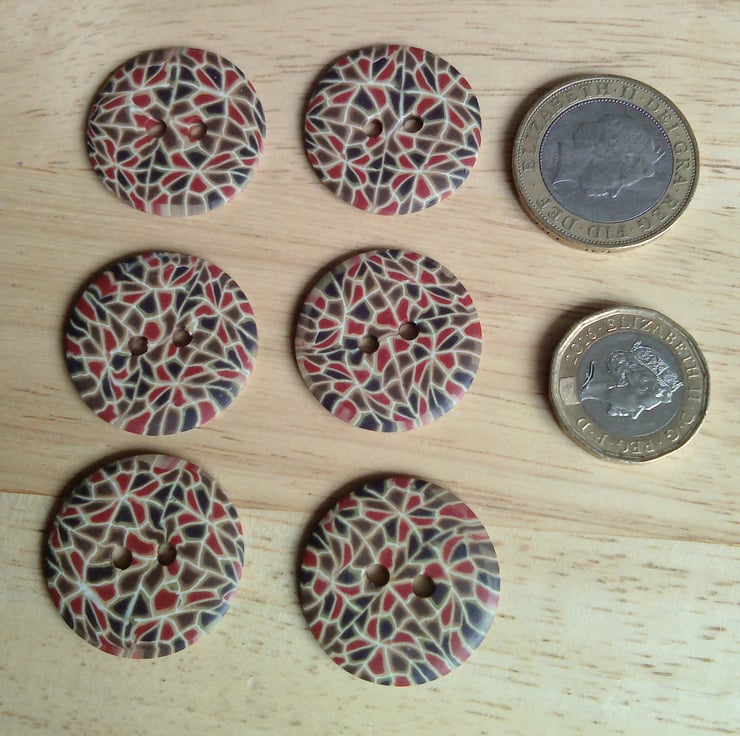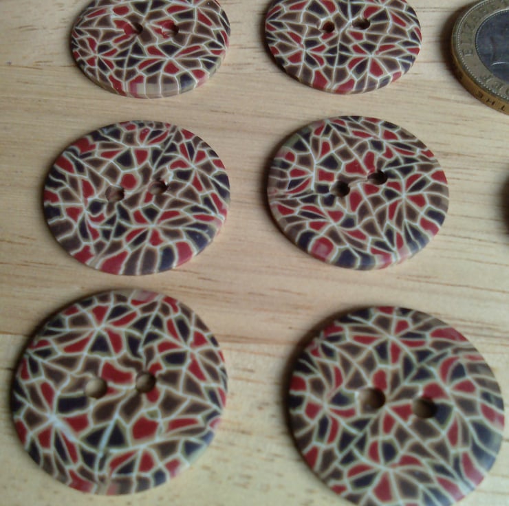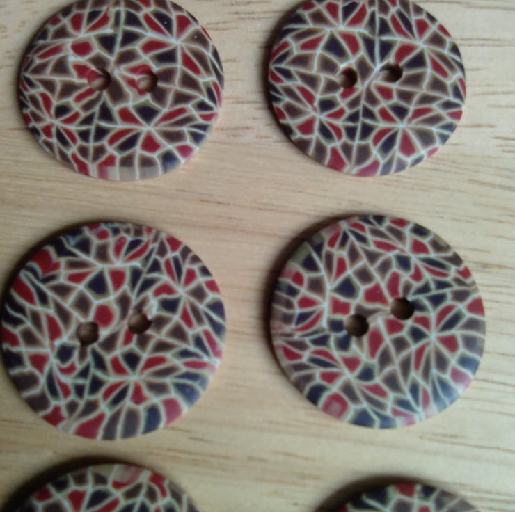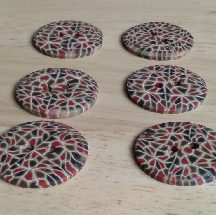 Set of 6 Medium size buttons. Buttons are handmade by me from polymer Fimo clay.