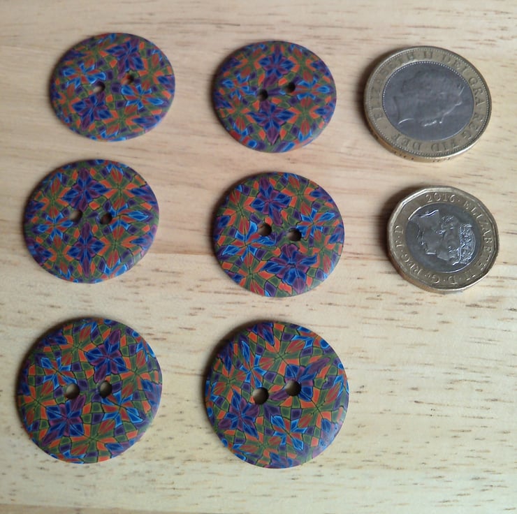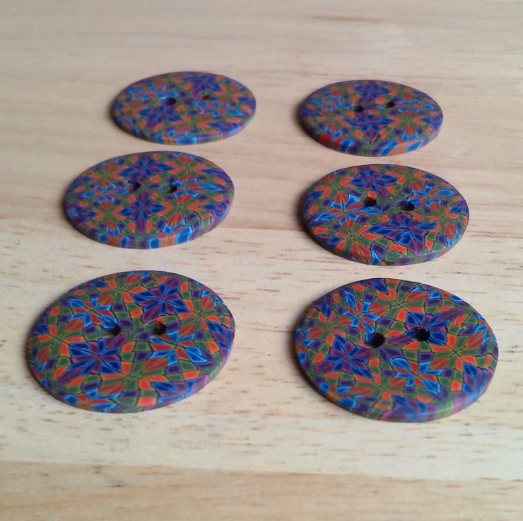 Set of 6 Medium size buttons. Buttons are handmade by me from polymer Fimo clay.