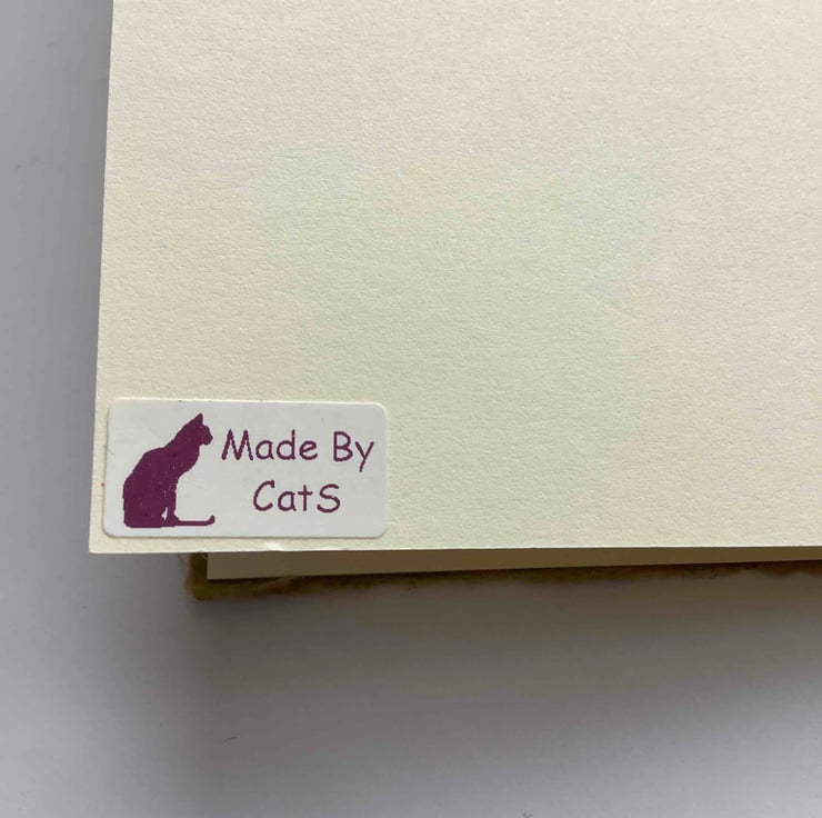The back is lined on one edge and there is a cat logo with Made by cats.