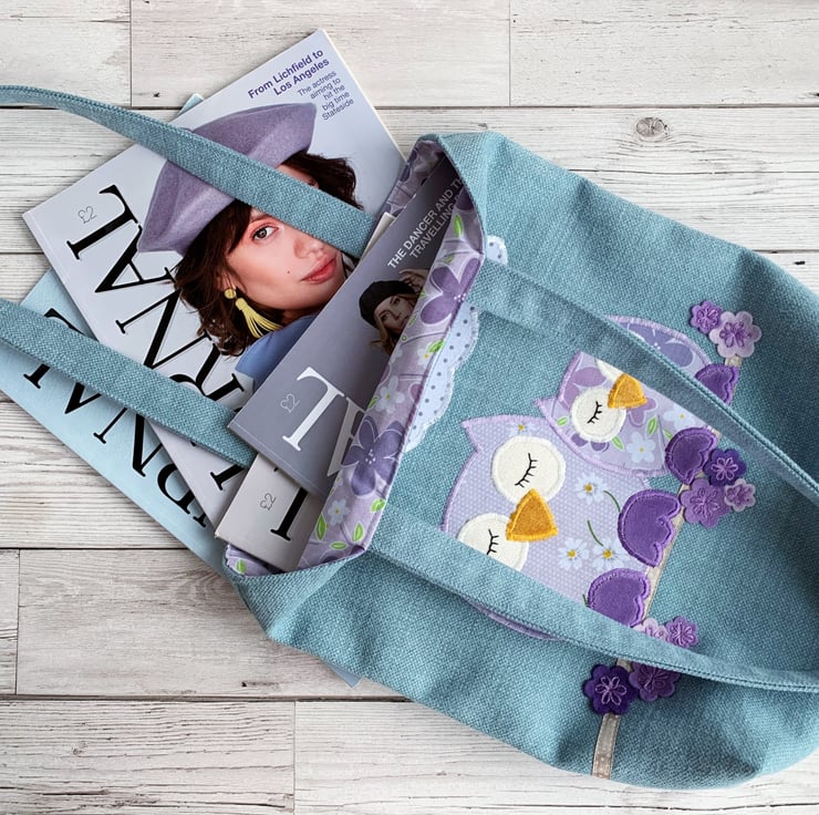 This tote bag is both versatile and pretty. With its beautiful spring colours, cute owls, and lovingly embroidered blossom, it would make a lovely gift, particularly for someone who loves owls.