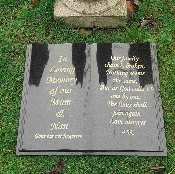 Precisely Laser Etched Directly into the Granite using our state of the art technology, for a fully weatherproof and high quality finish.
