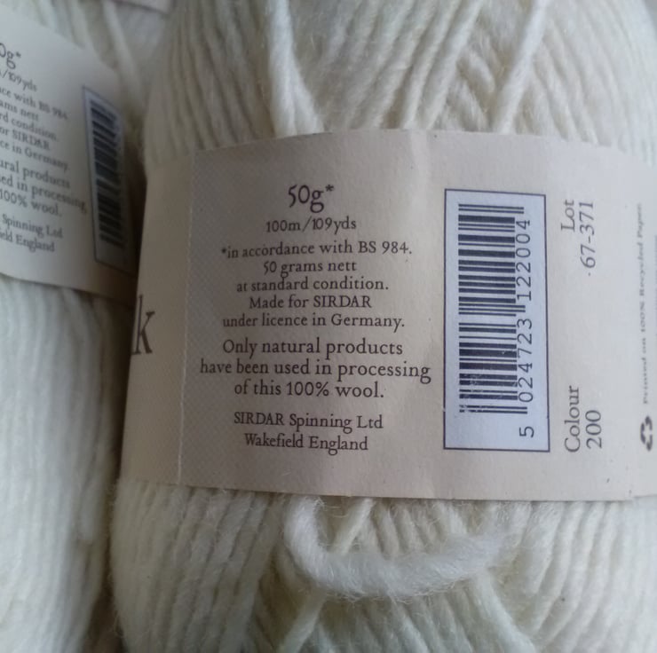 This listing is for 1 X 50g SIRDAR ECO WOOL DK in Ecru