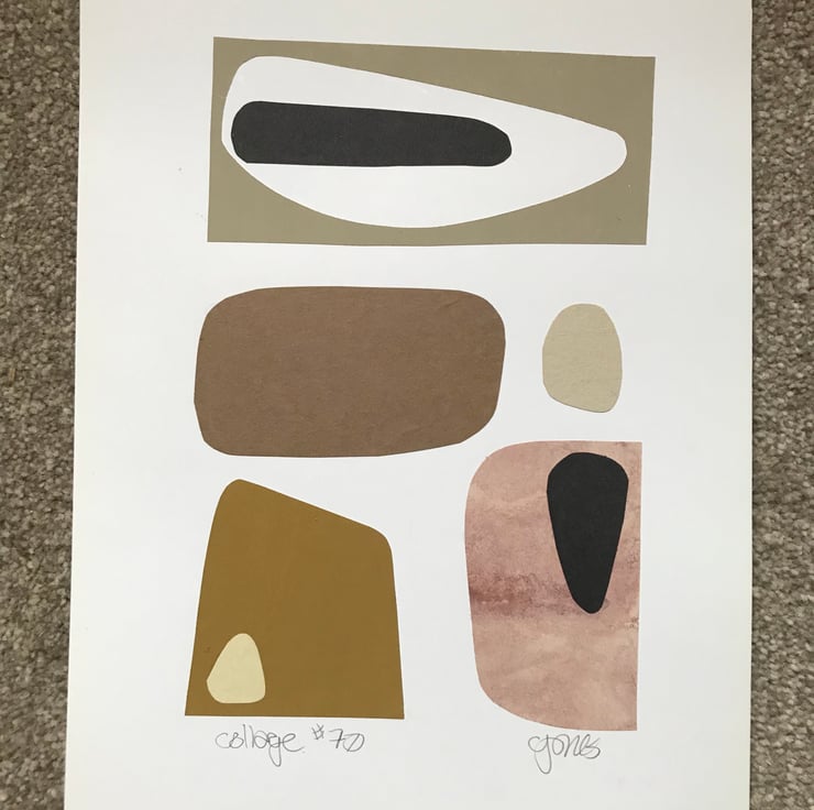 Cut and/or torn paper collage on white card, made using a variety of vintage and hand-painted papers. Card size is A4 or 21 x 29 cm (approx)