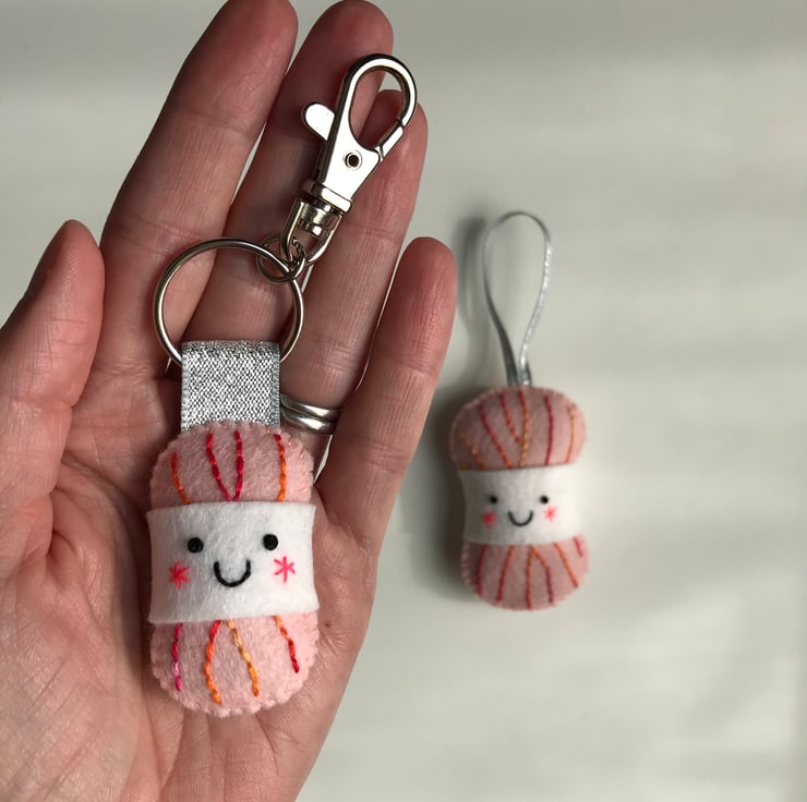 The ‘baby’ yarn ball keyring measures 6cm / 2” long (excluding the keyring fob).