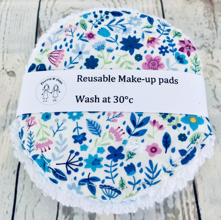 Reusable make up pads, made from 100% cotton towelling and patterned fabric.