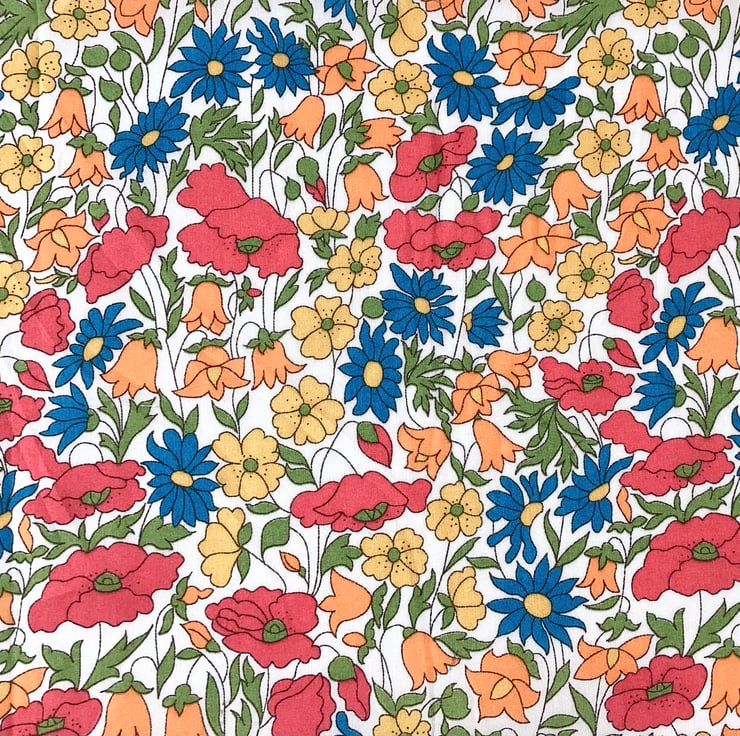 Liberty Fabric 10" Square : POPPY AND DAISY : Blue Green Orange White Floral