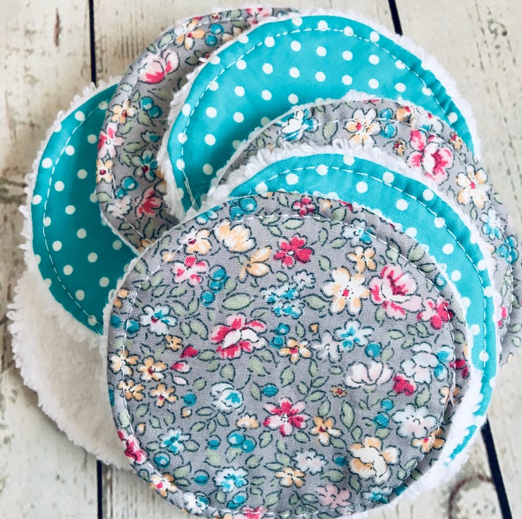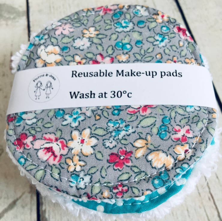 Reusable make up pads, made from 100% cotton towelling and patterned fabric.