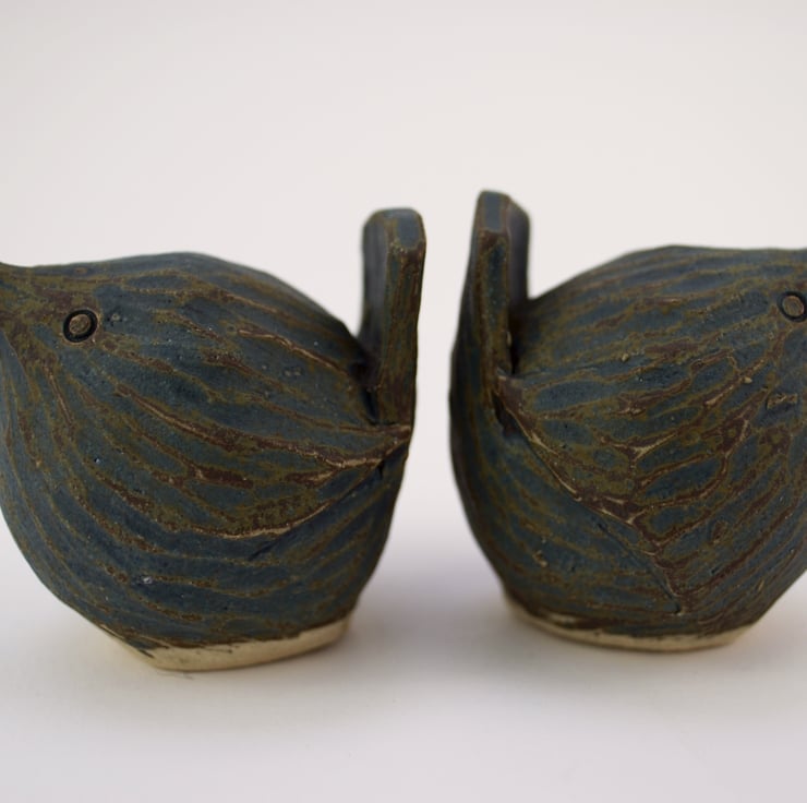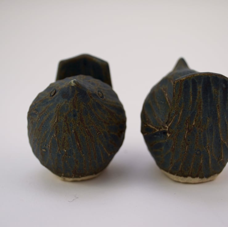 I begin by making a pinch pot in stoneware clay, then add the features and model them to give character. The tilt of the beak or the angle of the tail giving each bird its own personality.