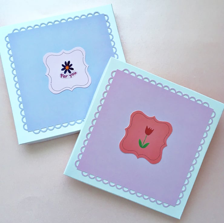 If you would prefer your card to be wrapped in tissue and presented in a gift box then you can select that option instead. The box measures 16 by 16 cm and is 1.5 cm deep so it can be posted Large Letter which will fit through most letter boxes. As the gift box will be made to match the card it may be different from the examples in the photos.