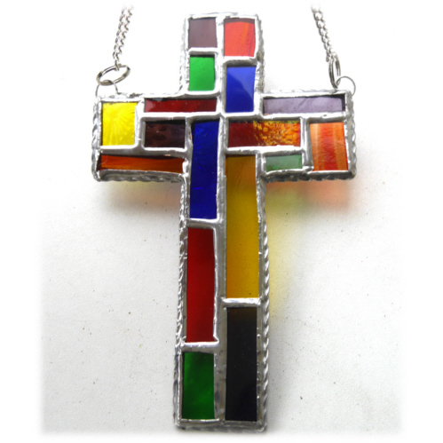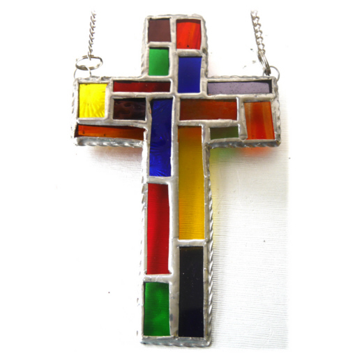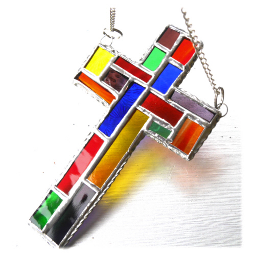 I've tried to incorporate the design of a modern stained glass church window into a classic cross shape.