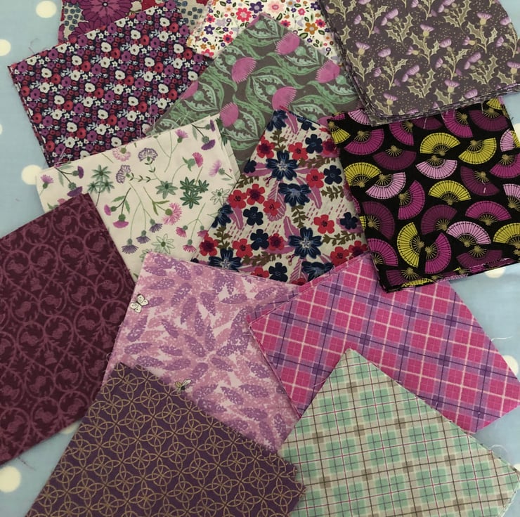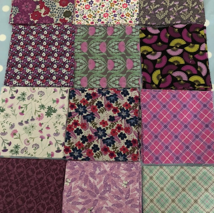 A pretty selection of gorgeous fabrics in 5” squares ideal for patchwork quilts, cushions and sewing projects