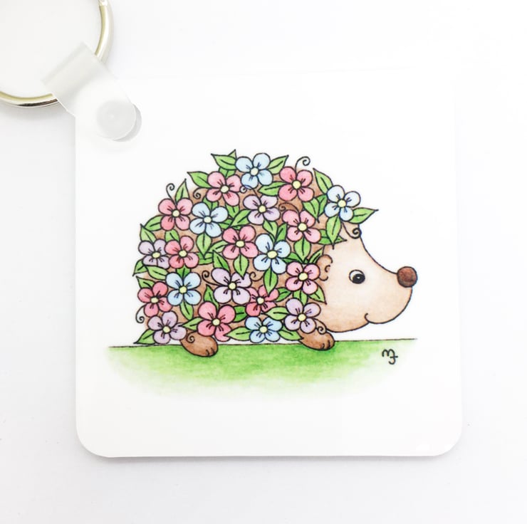 These quality plastic board keyrings feature my original floral hedgehog artwork, professionally printed to the highest standard.