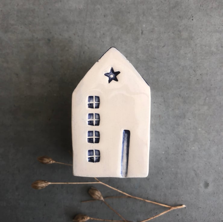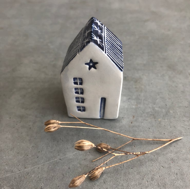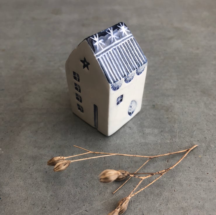 A lovely unique hand built little ceramic house .