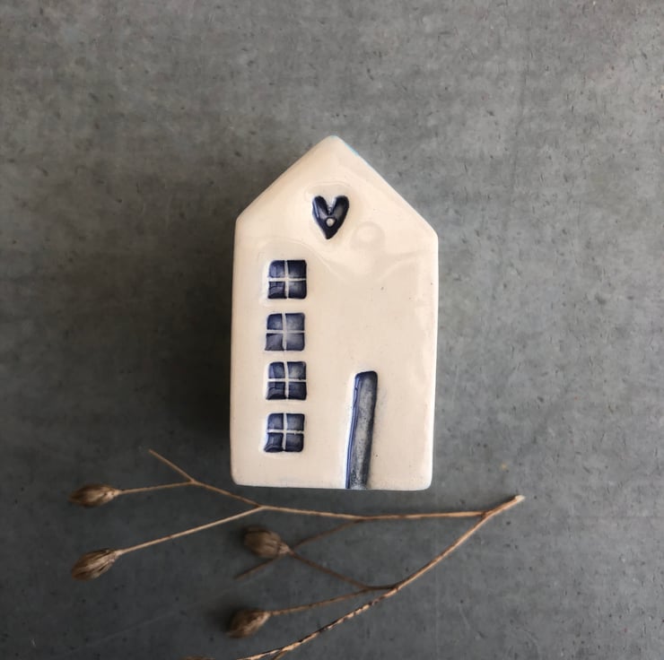 A lovely unique hand built little ceramic house .
