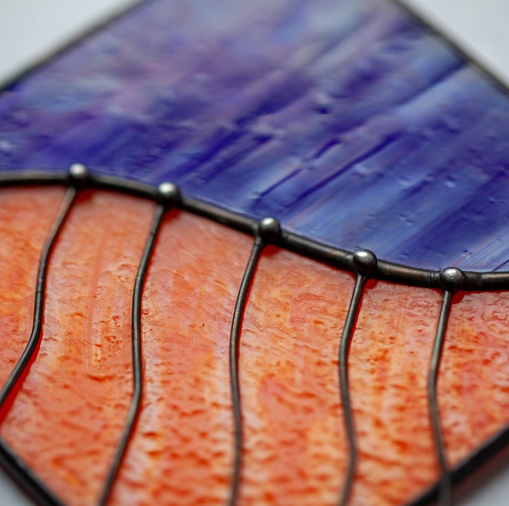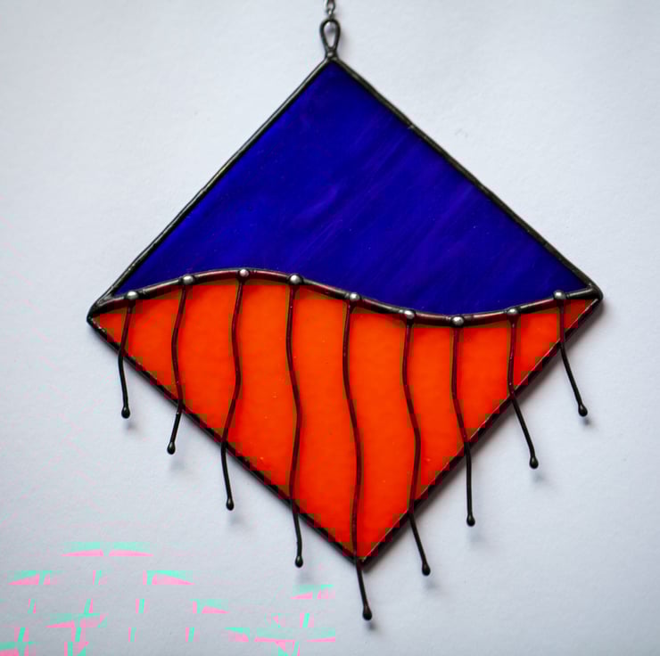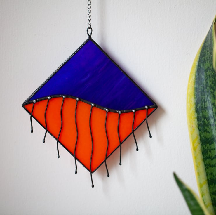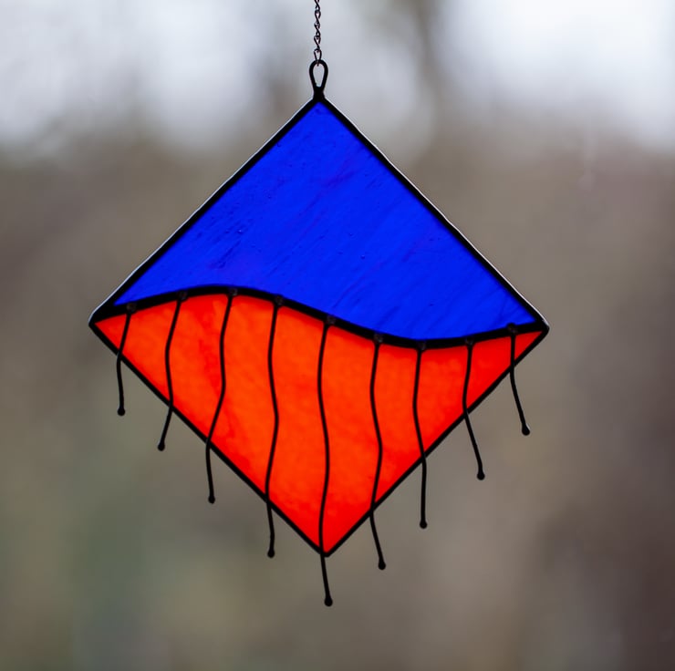 Here is for you colourful window hanging. Made of real stained glass using Tiffany technique. This modern style wall hanging would make a beautiful addition to any room and create a contemporary look. Definitely brights it up! The hanging is approximately 24cm long and 14cm wide. The square is 10x10cm