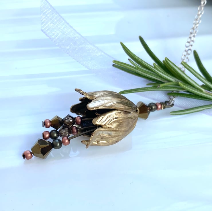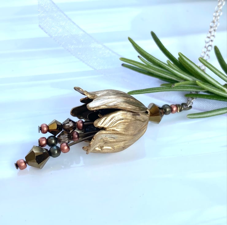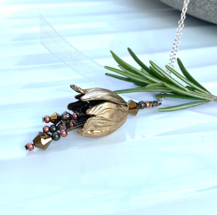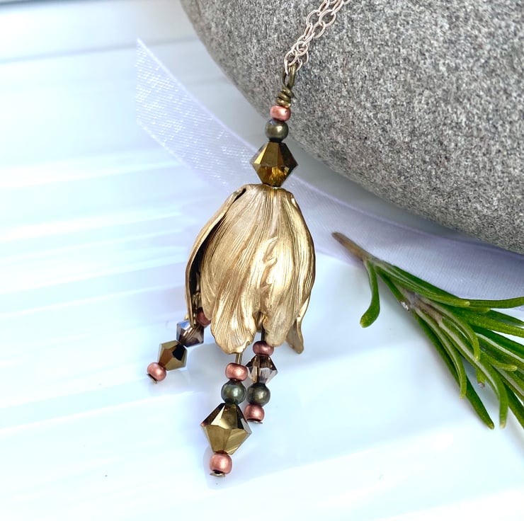 A precious Bronze coloured tulip necklace - ideal anniversary or mother gift .