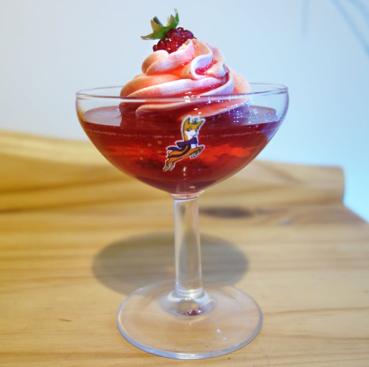 The rich colourful desserts of France - vivid clear jelly with creamy whipped cream.