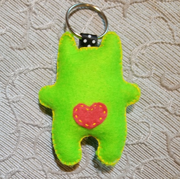 Little green monster will happily look after your keys or hang onto anything. He is a carefully hand stitched felt stuffy created from my own design and will hopefully make anyone smile!