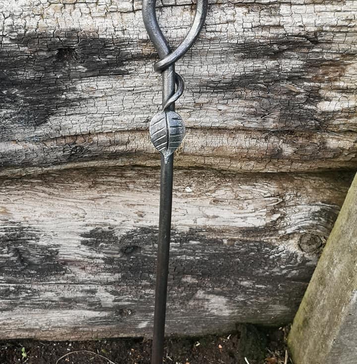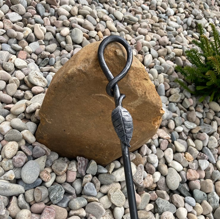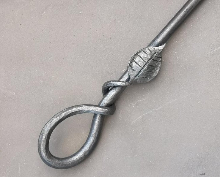 This is a hand crafted leafy style fire poker that i handmade in my blacksmiths forge. i got the inspiration from nature and the way leaves flow and wrap around each other. the handle hand leaf flow seamlessly together.