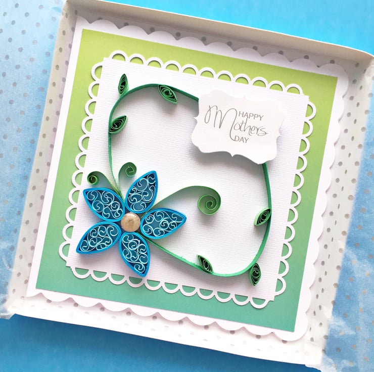 A beautifully-quilled card for a special Mum on Mother’s Day with the option to add a gift box for that extra special touch.