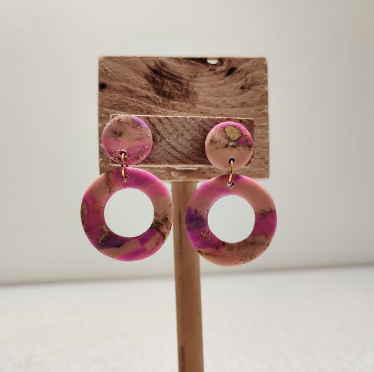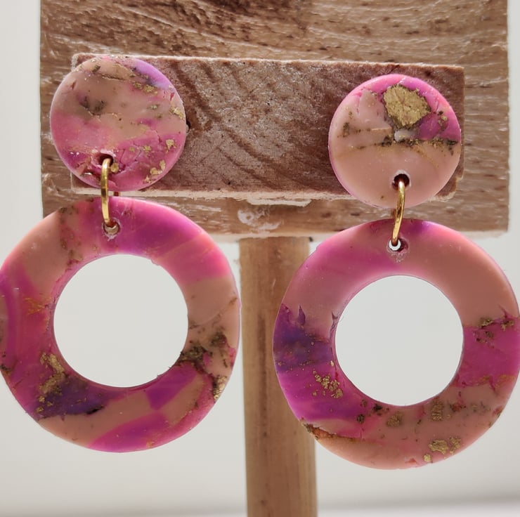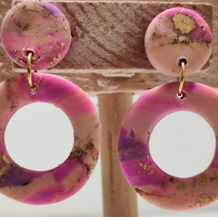 Hand made polymer clay earrings with an abstract pattern. Small- medium sized. Stud fixing which can be painted with hypo allergenic coating for free on request. Please see all photos for close up detail. All products handmade therefore there may be minor imperfections. Each pair sold as seen, message for more info