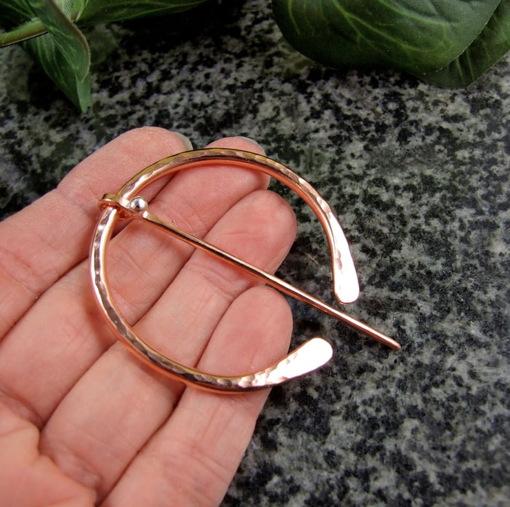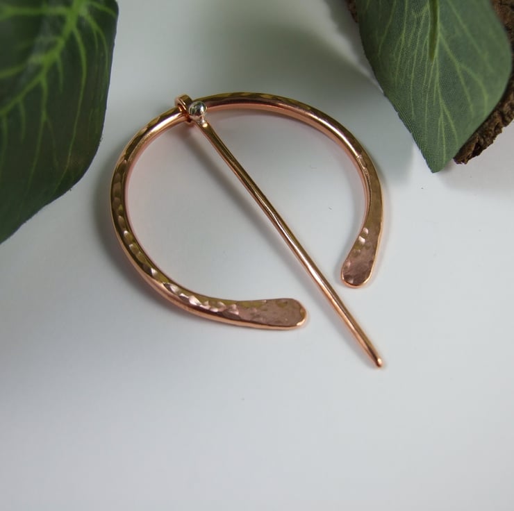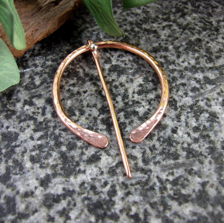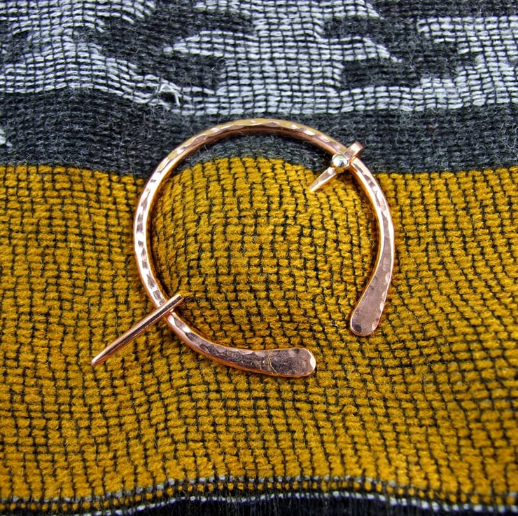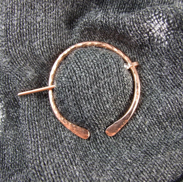 Hand forged hammered copper celtic penannular brooch for open weave or knit shawl, scarf, wrap or cardigan.