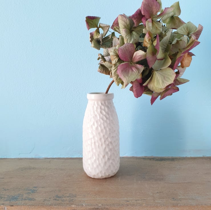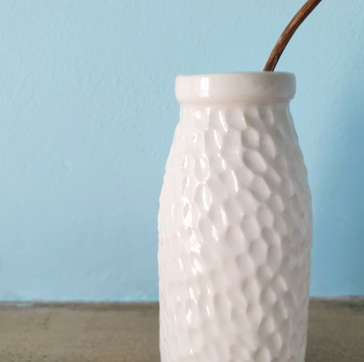 Small porcelain milk bottle vase.