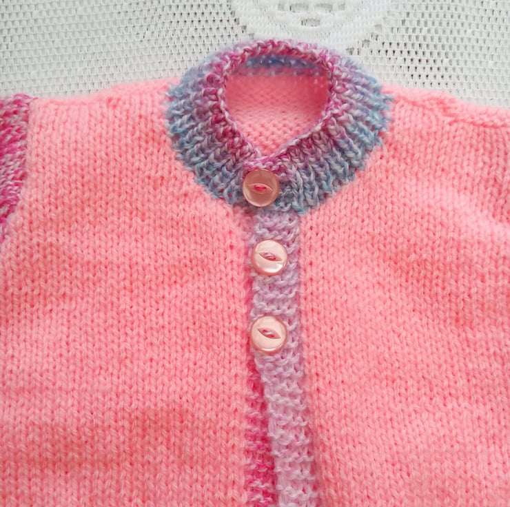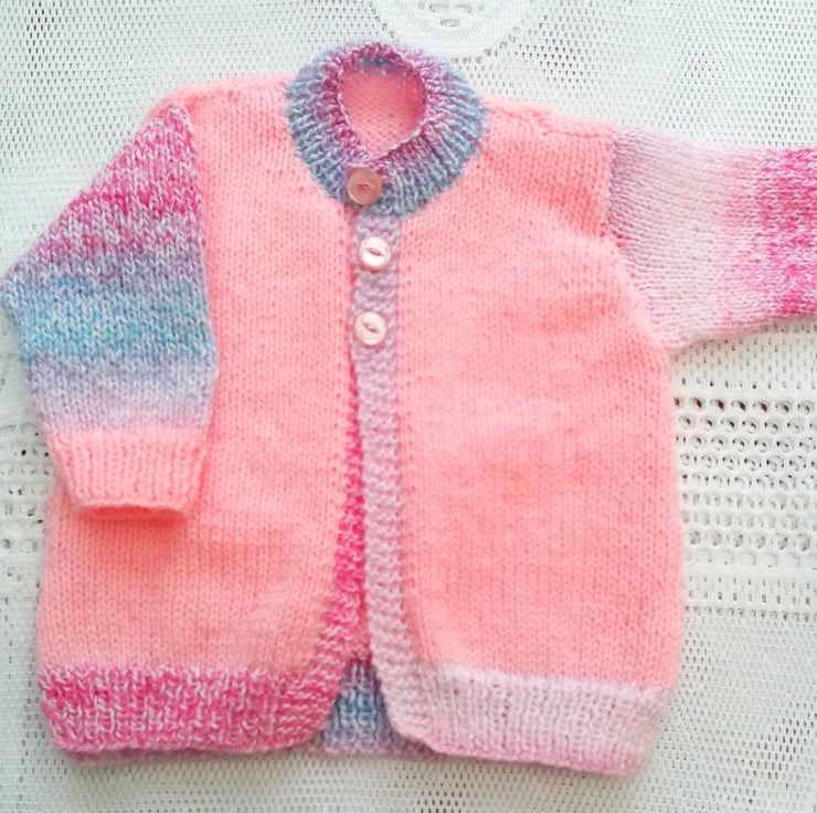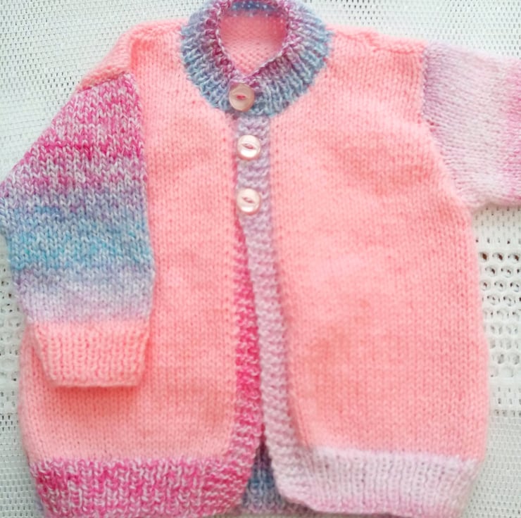 Hand Knitted Cardigan In Shades of Pink Yarn, Round Neck Cardigan, Hand Knitted Cardigan, Pink Cardigan, Baby Clothes, Children’s Clothes, Baby’s Cardigan, New Baby Gift, Gift for Baby Shower, Birthday Gift